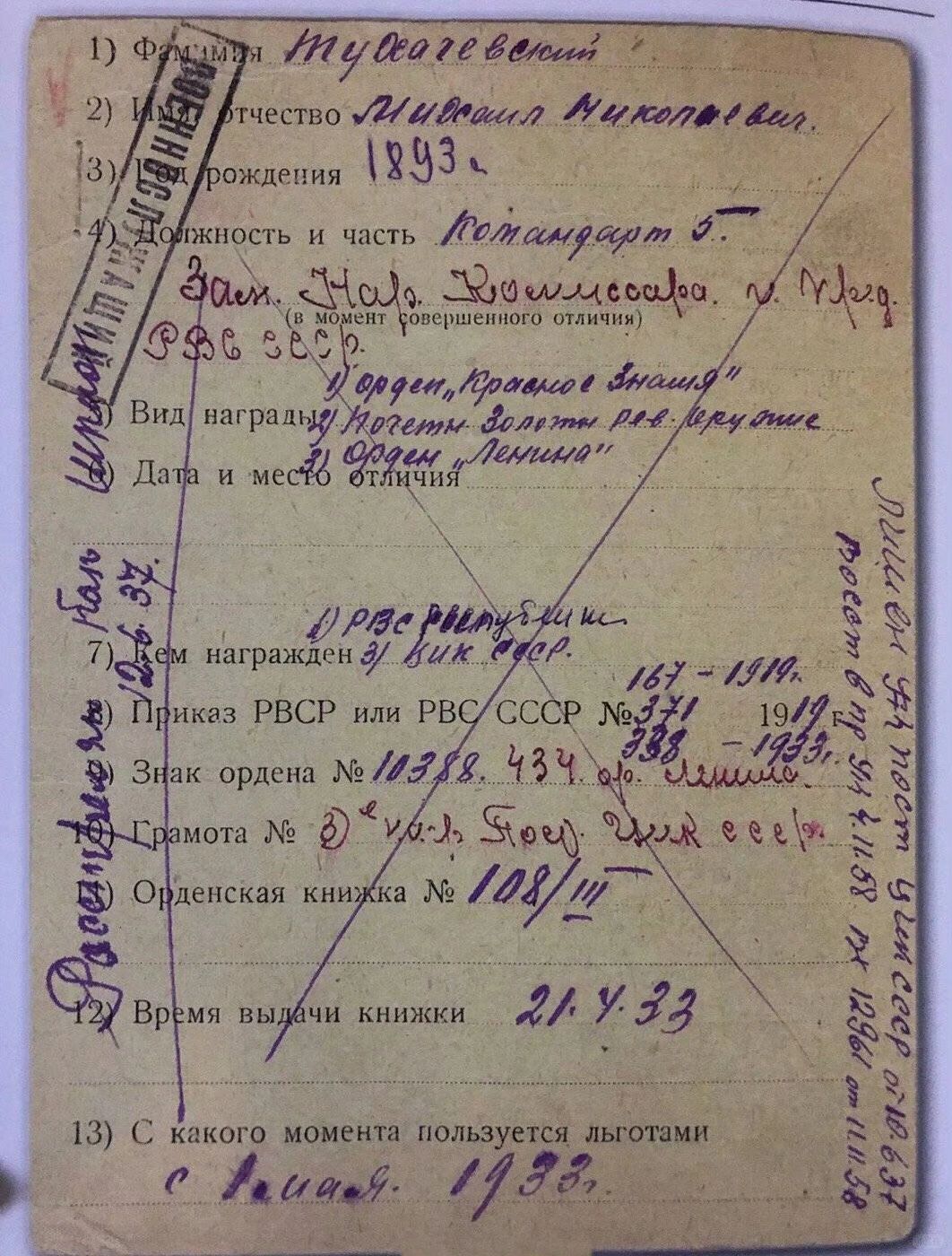 苏联元帅米哈伊尔·尼古拉耶维奇·图哈切夫斯基(1893—1937),苏联著名军事家,大纵深战役理论的提出者,苏联历史上最年轻的方面军司令(27岁),苏联第一批受封的五位元帅之一。1937年被诬陷为德国间谍,6月11日被枪毙。1956年的苏共20大上被平反昭雪。