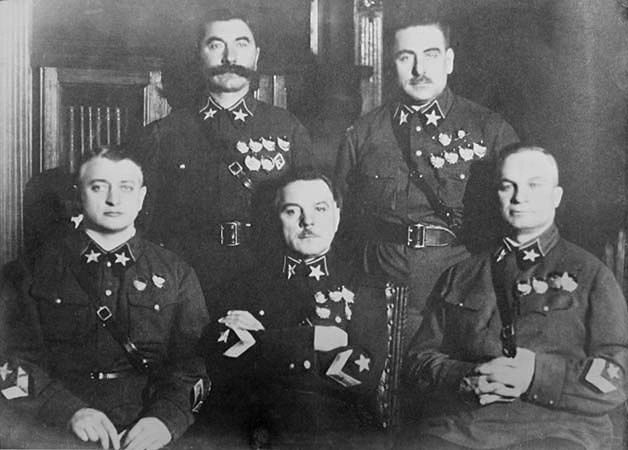 图5是1935年苏联第一批受封的五位元帅合影,最左是图哈切夫斯基,这五位元帅里后来有三位被处决。