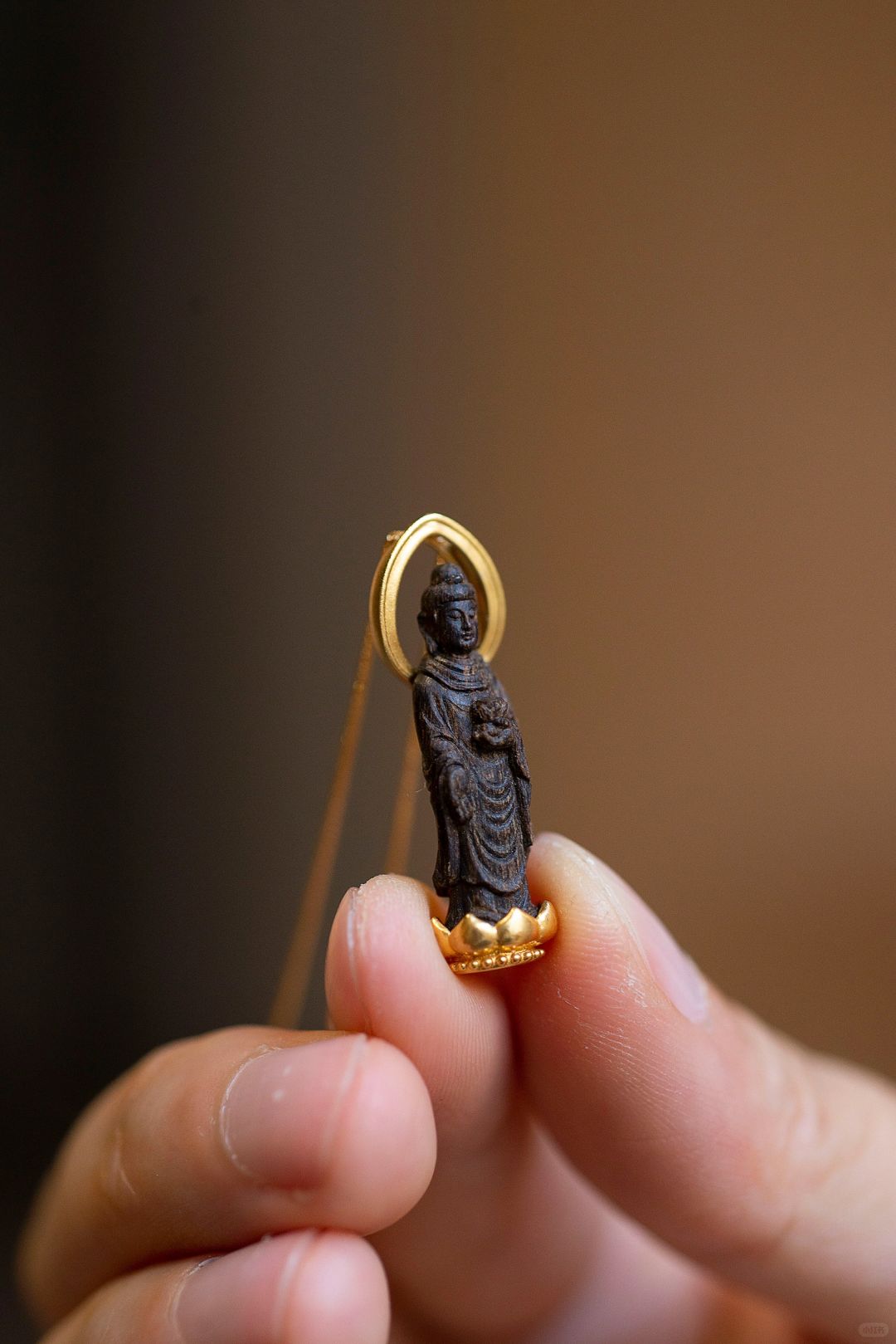 沉香镶嵌18k金【黄财神手机挂】💯💯