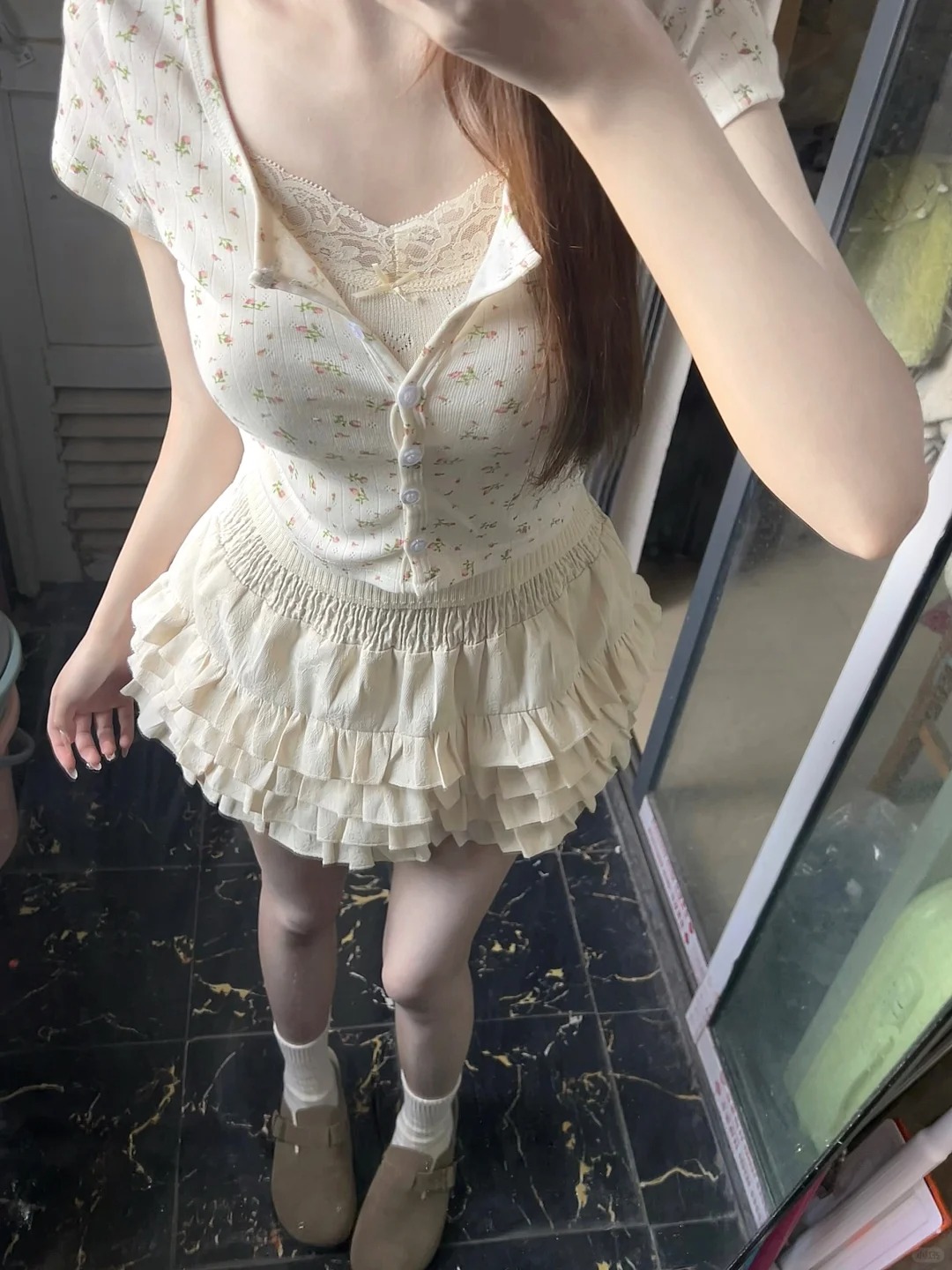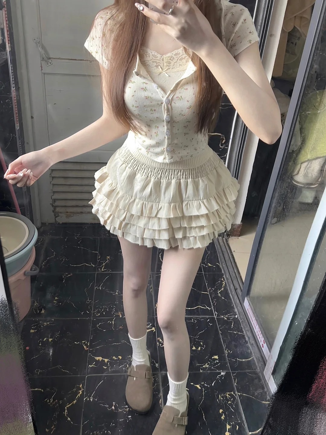 早春小个子清纯软妹穿搭 碎花上衣配蛋糕裙好可爱
