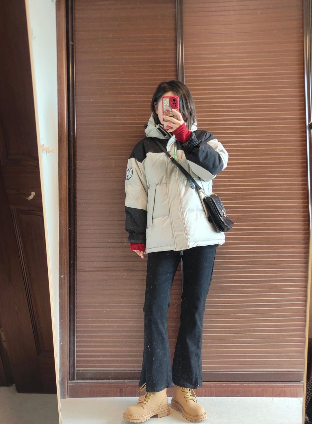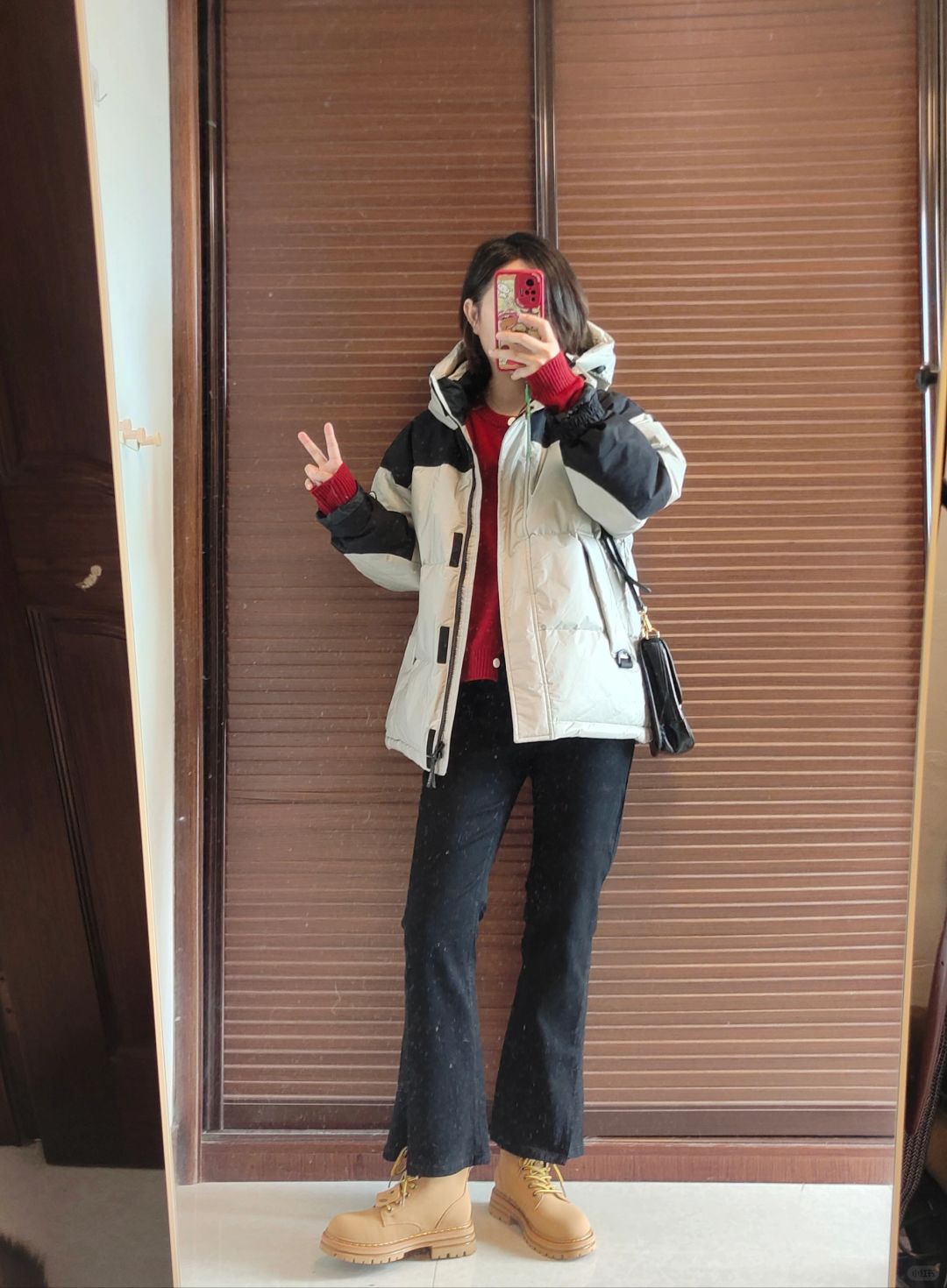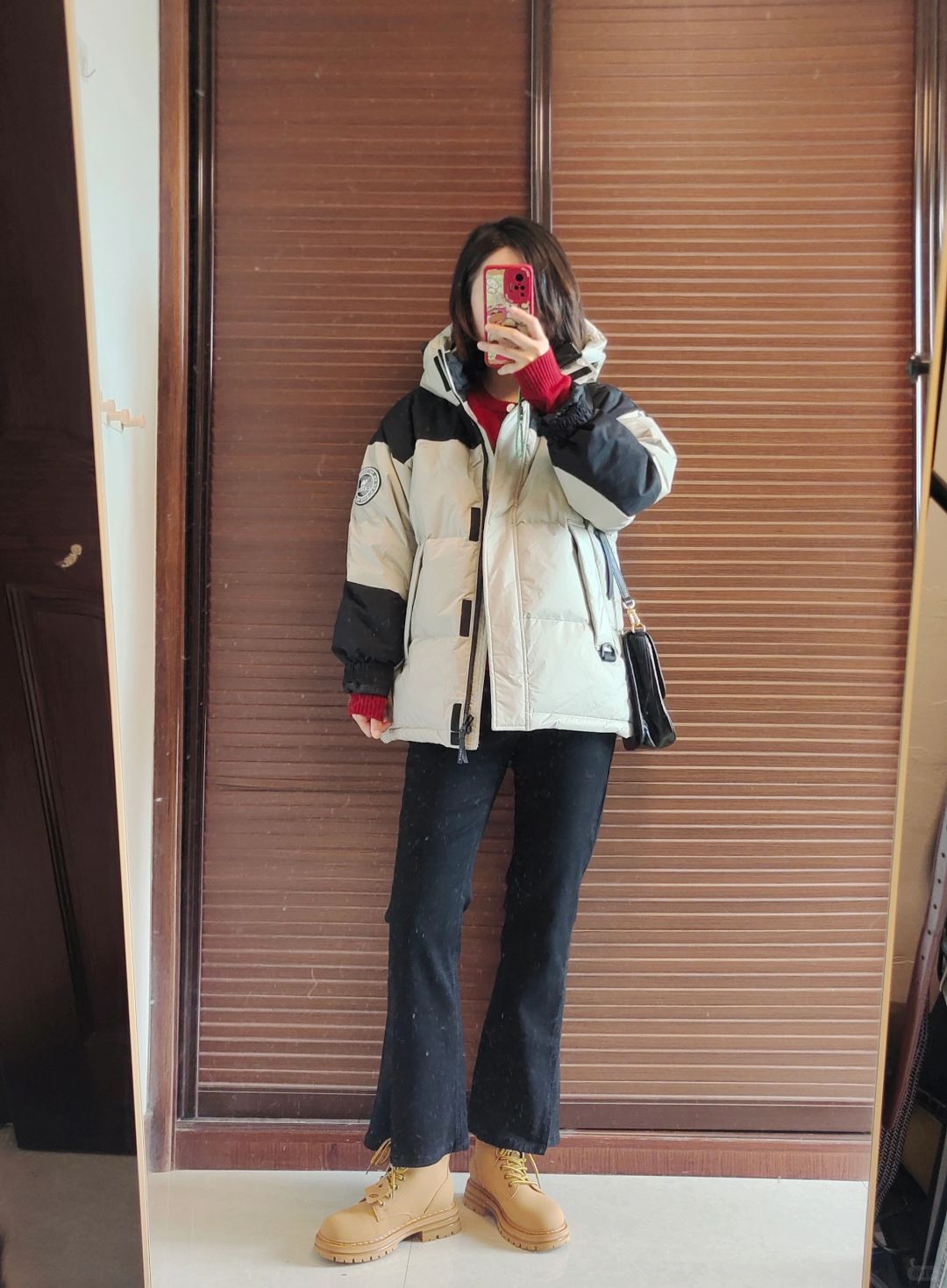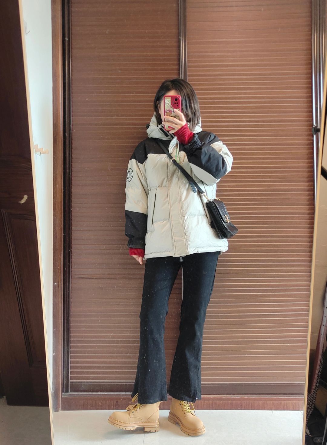 黑色羽绒服穿腻了 入了一件拼色款 清清爽爽 不用费力搭配 就足够特别🥰