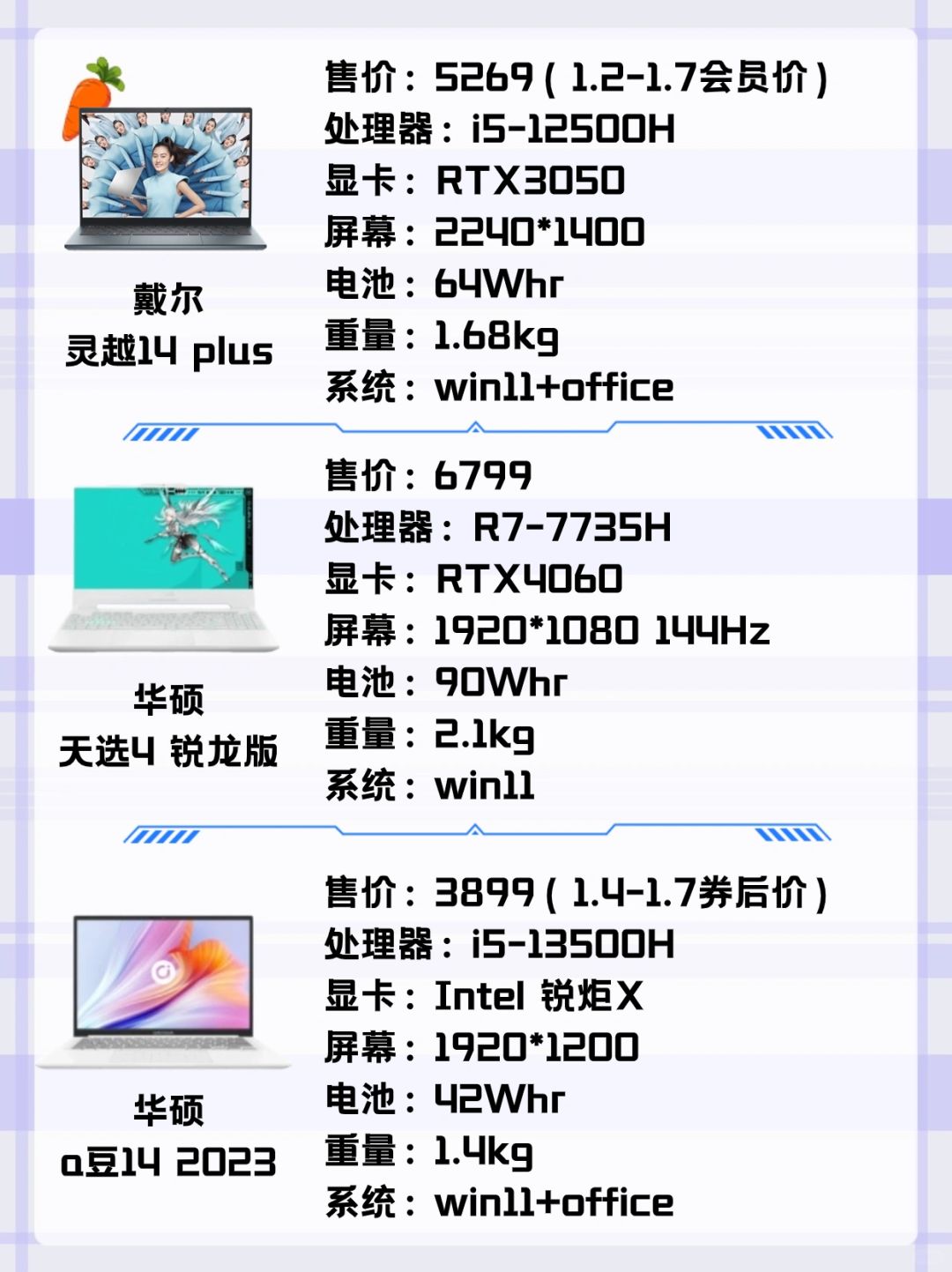 1.戴尔 灵越14 plus i5-12500H/16G/512G/RTX3050