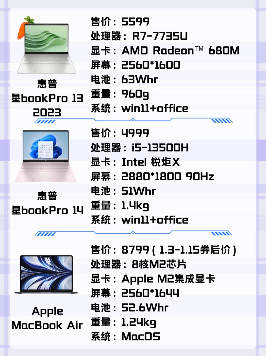 5.惠普 星book pro14 i5-13500H/16G/1TB