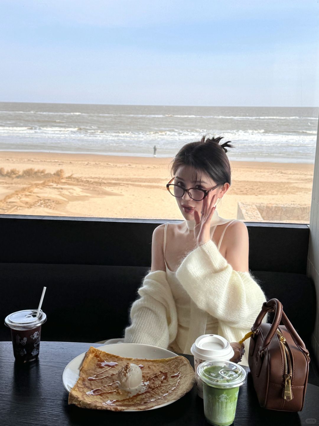 👭在生日🎂这天拍到了今年第一组人生照片 冬天的阿那亚真的有一种迷si人的美 最好拍的咖啡馆 淡季真的很舒服😌 就是海风有点冷 舒舒服服坐上一整天