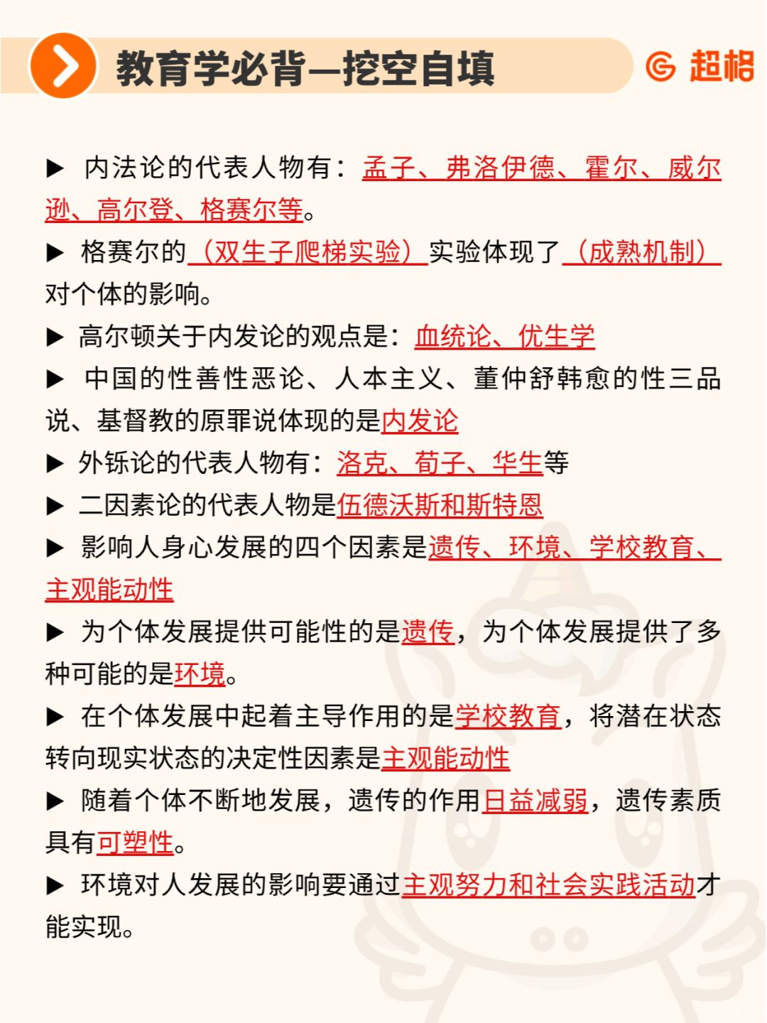 教育学的高频考点整理 适用于教师招聘考试 考查 教基/教综等科目的同学们 先来测试自己的掌握程度,再对照答案复习一遍!