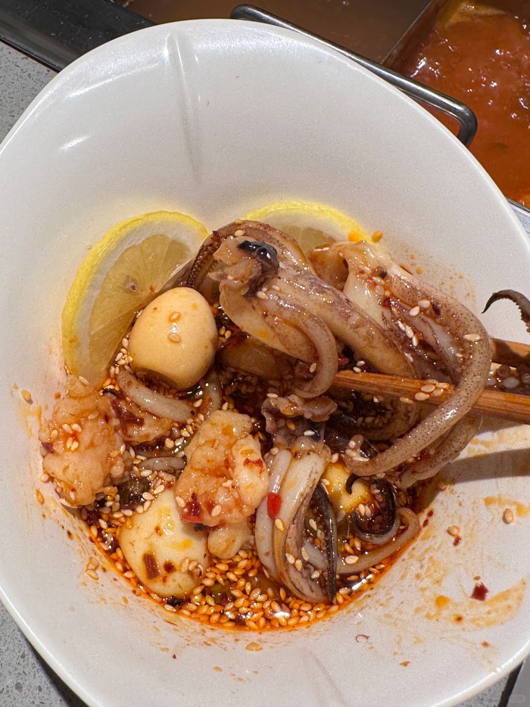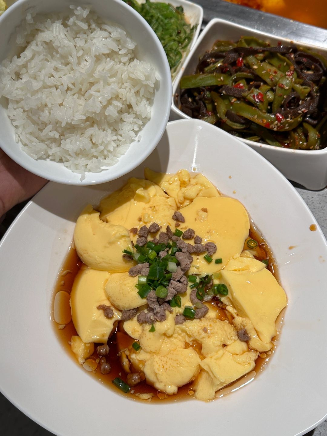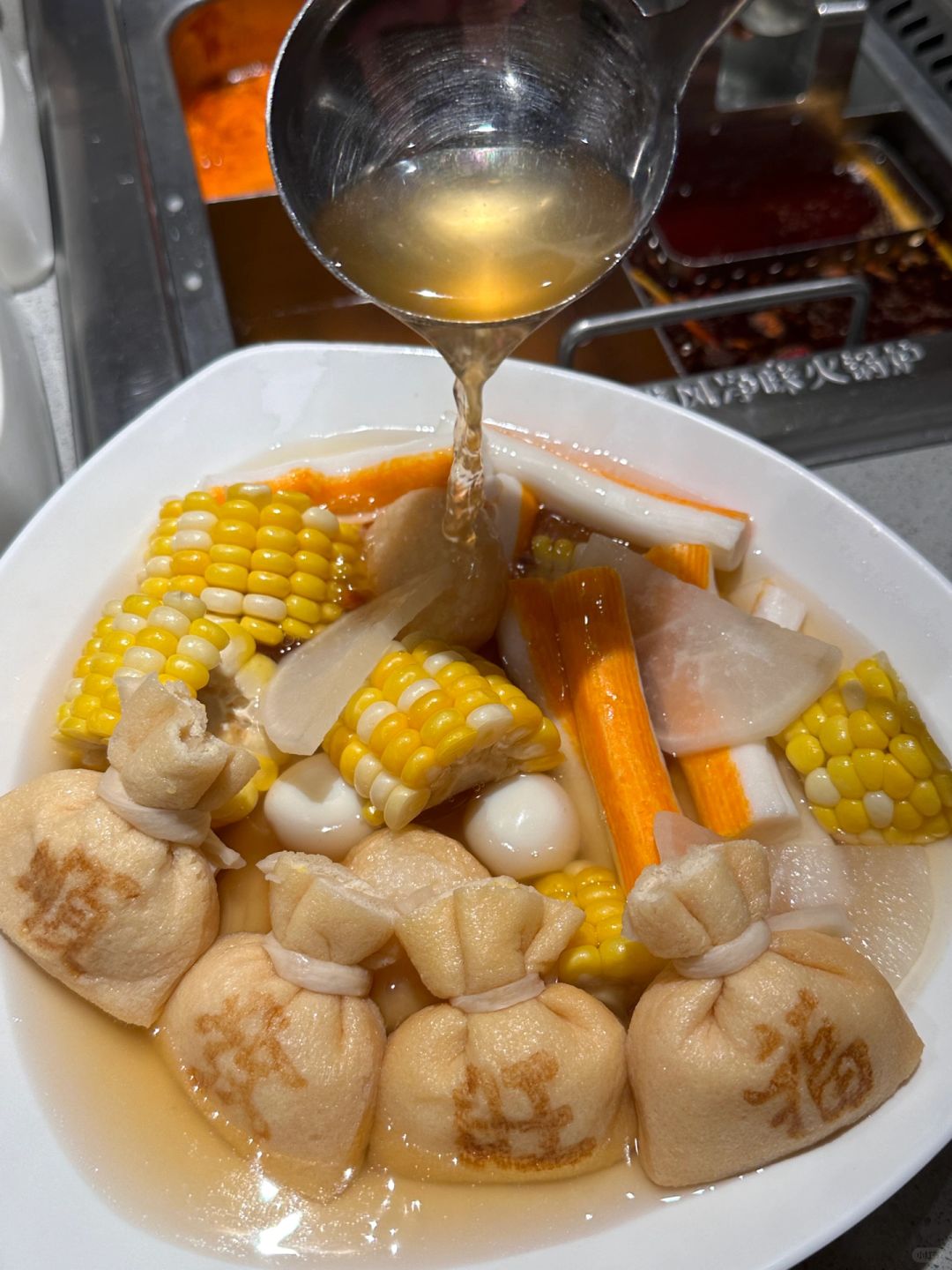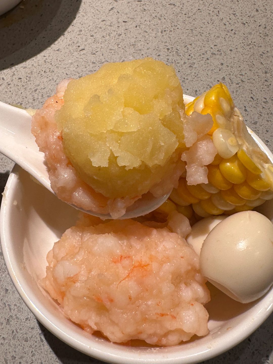 又又又来海底捞做饭了!!! 海底捞最近的新年氛围真的好浓! 蒸奇斗艳花馍还有人没点的嘛! 龙头造型的花馍,内馅儿是糯叽叽的紫薯泥!你龙我龙慕斯,粉色黄色分别是白桃和橙子味的!! 入口即化!口感清甜!戴着龙头帽的小哥给我送上了大🐲龍馍馍太可爱噜~