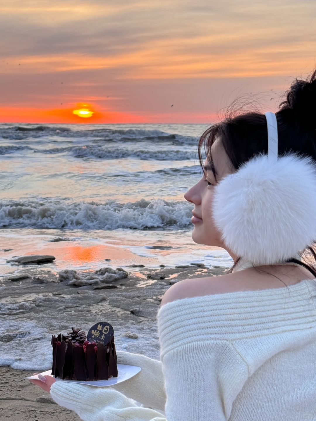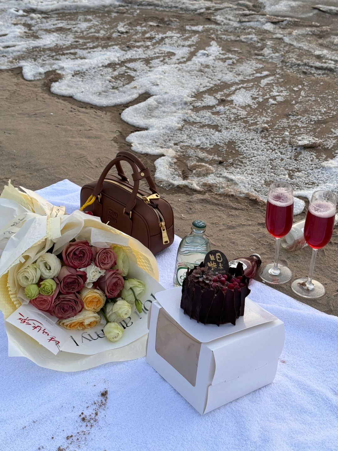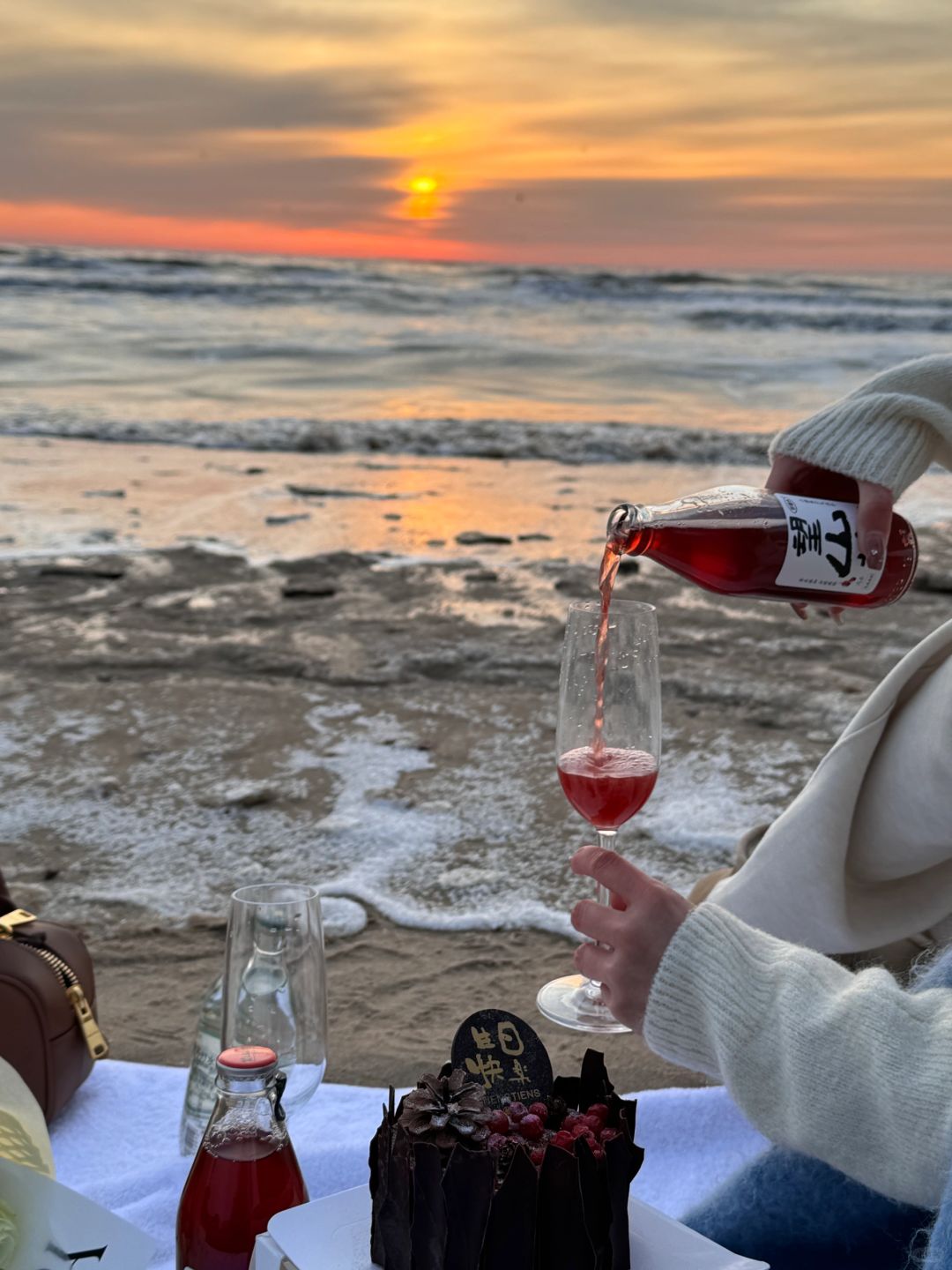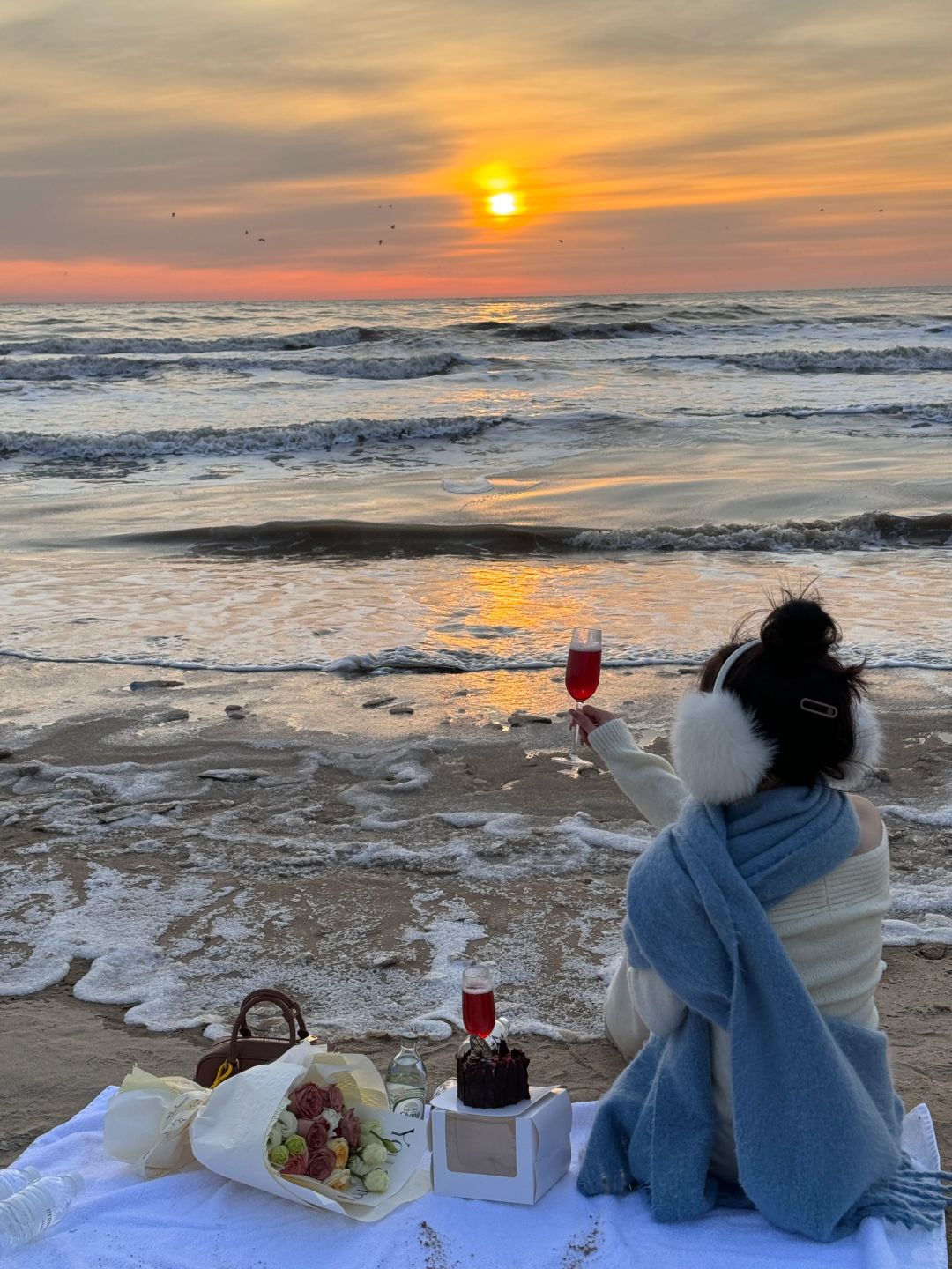 𝐇𝐚𝐩𝐩𝐲 𝐁𝐢𝐫𝐭𝐡𝐝𝐚𝐲 𝐓𝐨 𝐌𝐞🎂 冬天阿那亚的橘子海日出太浪漫了💕水瓶座♒️爱惨了! - 花是海边市集里买的(剧场店)🈶两个海边市集,问一下酒店前台就知道 蛋糕是酒店送的(如果生日🎂月,可以提前让酒店简单布置准备) 饮料和杯子🥂都是在酒店借的