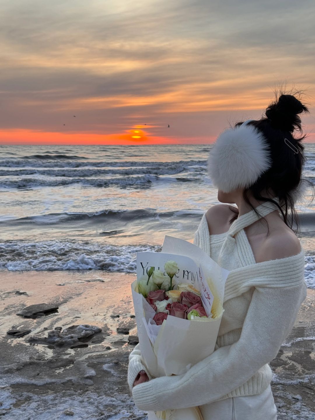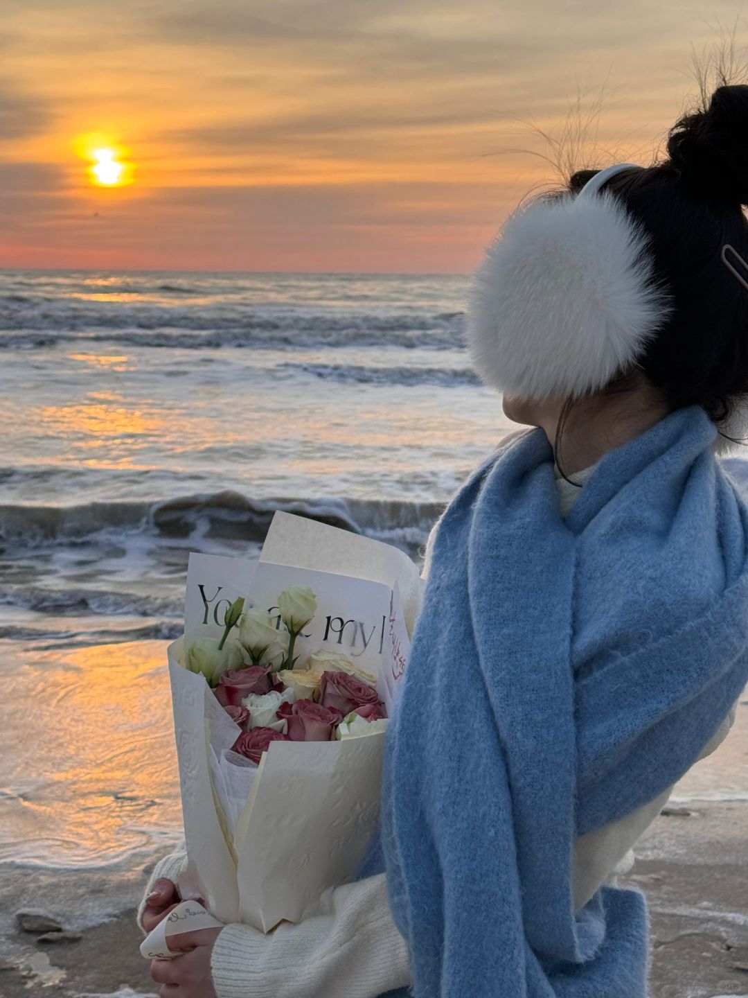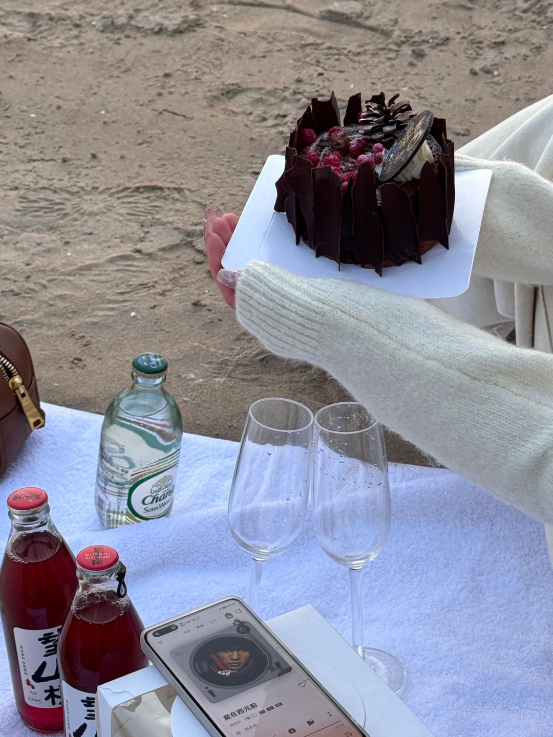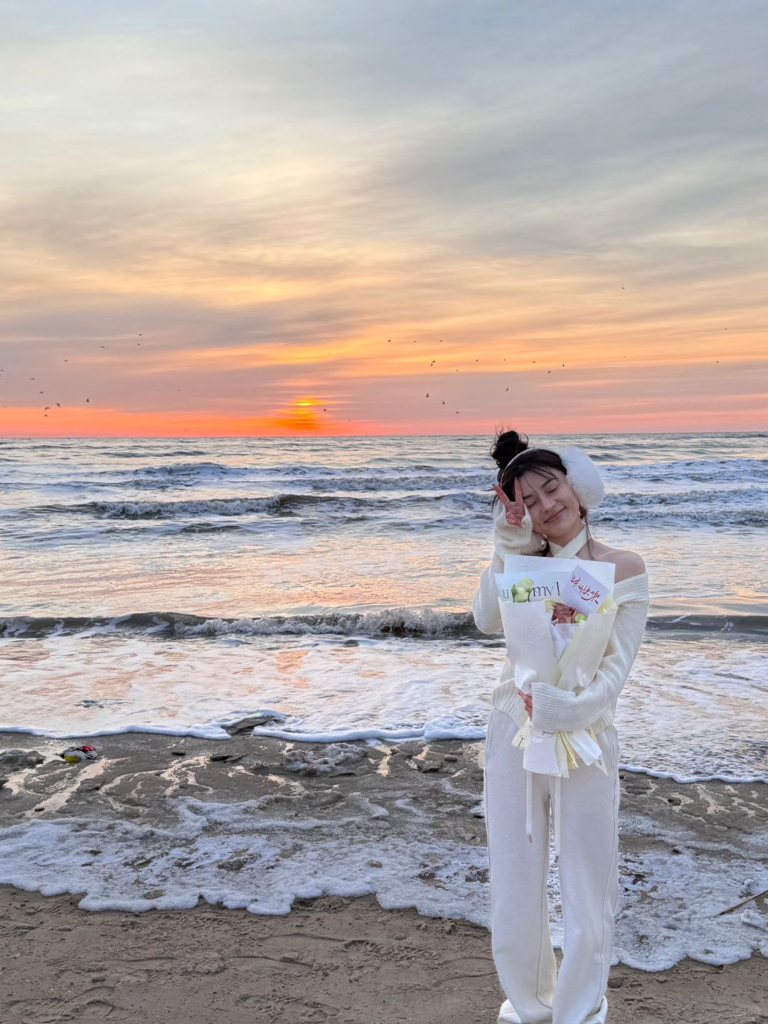 𝐇𝐚𝐩𝐩𝐲 𝐁𝐢𝐫𝐭𝐡𝐝𝐚𝐲 𝐓𝐨 𝐌𝐞🎂 冬天阿那亚的橘子海日出太浪漫了💕水瓶座♒️爱惨了! - 花是海边市集里买的(剧场店)🈶两个海边市集,问一下酒店前台就知道 蛋糕是酒店送的(如果生日🎂月,可以提前让酒店简单布置准备) 饮料和杯子🥂都是在酒店借的