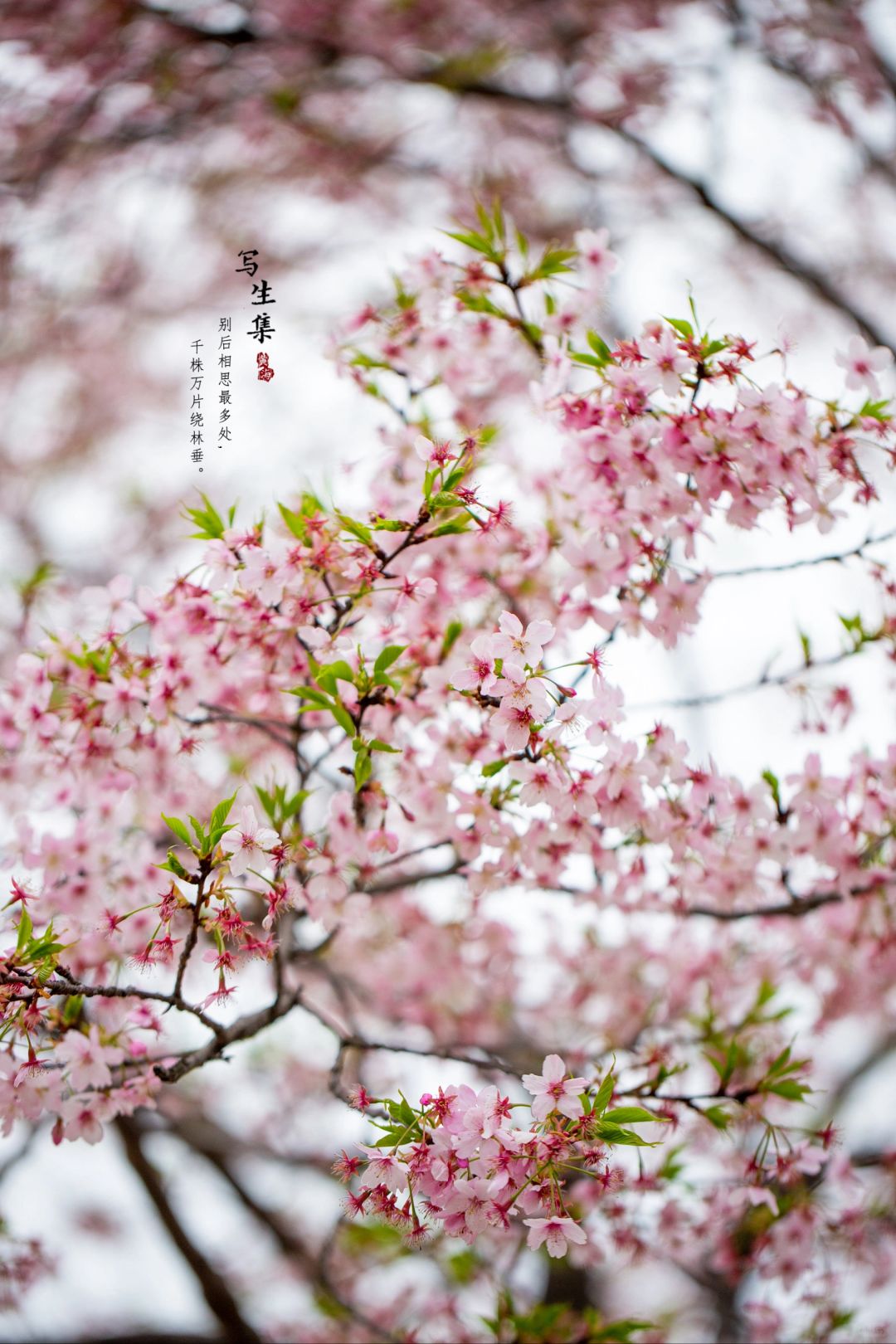 别后相思最多处, 千株万片绕林垂。 ———— 也许,今年最遗憾的就是错过早樱中的“大渔樱”,只能拍一点快也花谢,稍稍做一点补偿。 ———— 【大渔樱】是寒樱与大岛樱的杂交品种,而寒樱又是钟花樱与红山樱的杂交种,因此大渔樱也是钟花樱系列品种。钟花樱花色红艳、花期早、耐热性好,钟花樱的后代基本遗传这些特性,因此大渔樱也具有早花与耐热的特征,以及粉色花朵。