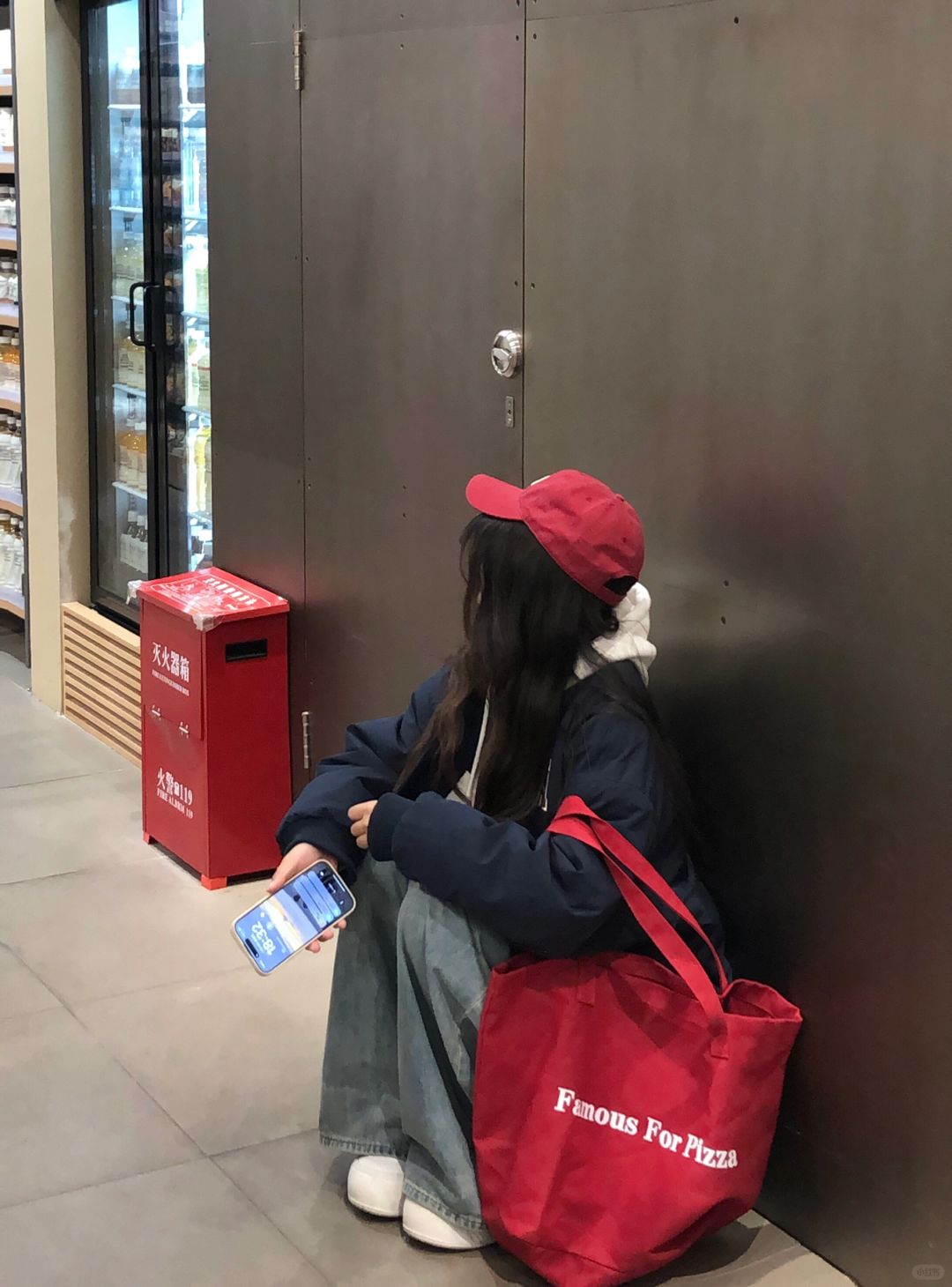 运动后放松时刻,穿红色卫衣,享受宁静时光。