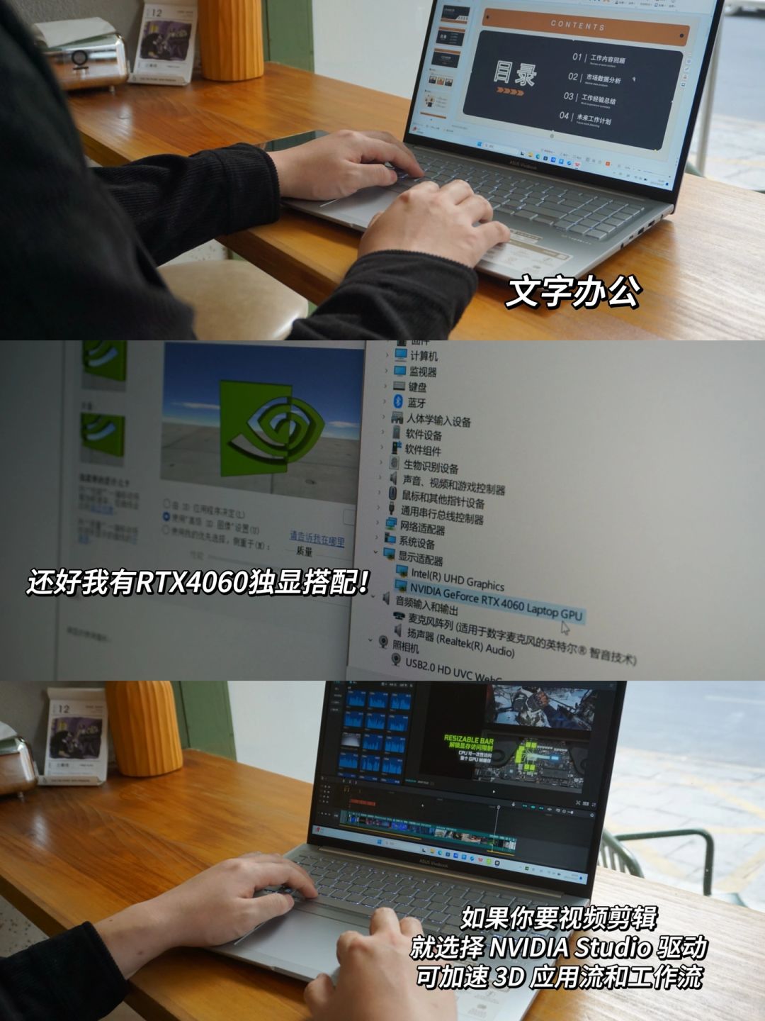 🔺最后是英伟达的诸多技术,如您要是制图用户,部分英伟达显卡可以在官网下载针对设计软件有更好优化的软件,如果游戏也可以下载针对游戏优化较好的驱动,40系显卡非常适合轻薄本或者是全能本,因为它的能耗比比较高,更加省电的同时也可以保证电脑有足够的性能输出,这款华硕无畏Pro16热卖也是因为40系显卡才是点睛之笔🤗