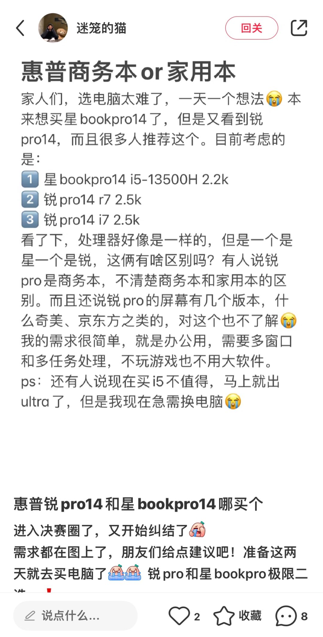 总结:动手能力差,平时大大咧咧的,买惠普锐 Pro,平时细节控,追求颜值,可以选星