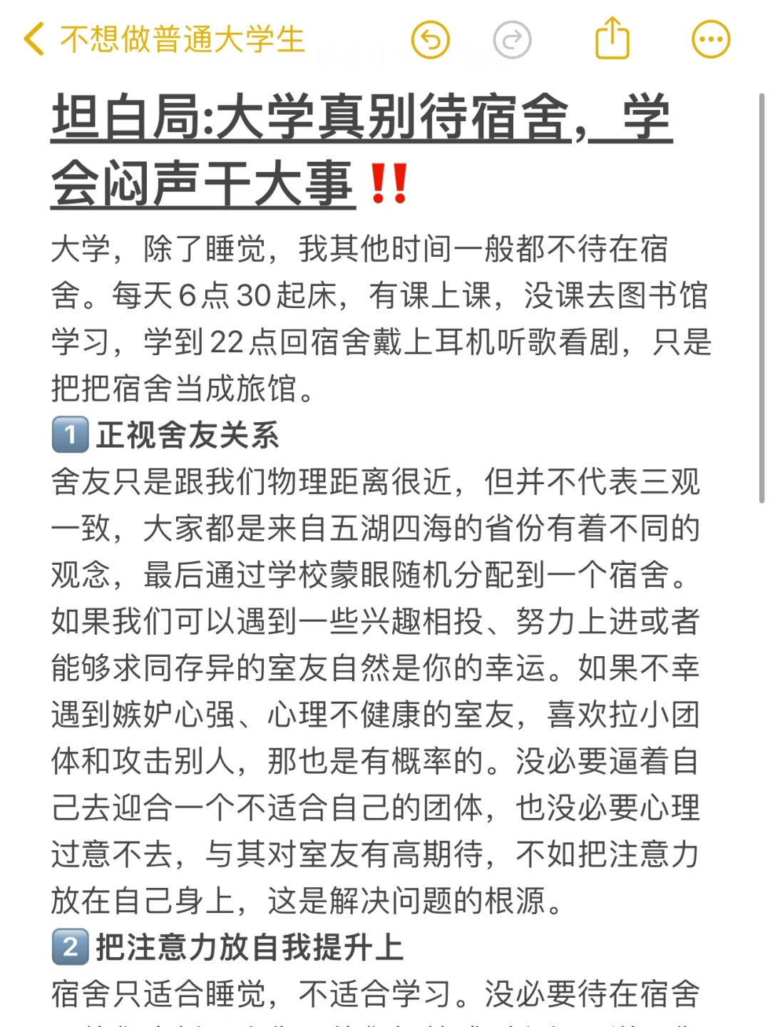 舍友只是跟我们物理距离很近,但并不代表三观一致,大家都是来自五湖四海的省份有着不同的观念,最后通过学校蒙眼随机分配到一个宿舍。如果我们可以遇到一些兴趣相投、努力上进或者能够求同存异的室友自然是你的幸运。如果不幸遇到嫉妒心强、心理不健康的室友,喜欢拉小团体和攻击别人,那也是有概率的。没必要逼着自己去迎合一个不适合自己的团体,也没必要心理过意不去,与其对室友有高期待,不如把注意力放在自己身上,这是解决问题的根源。