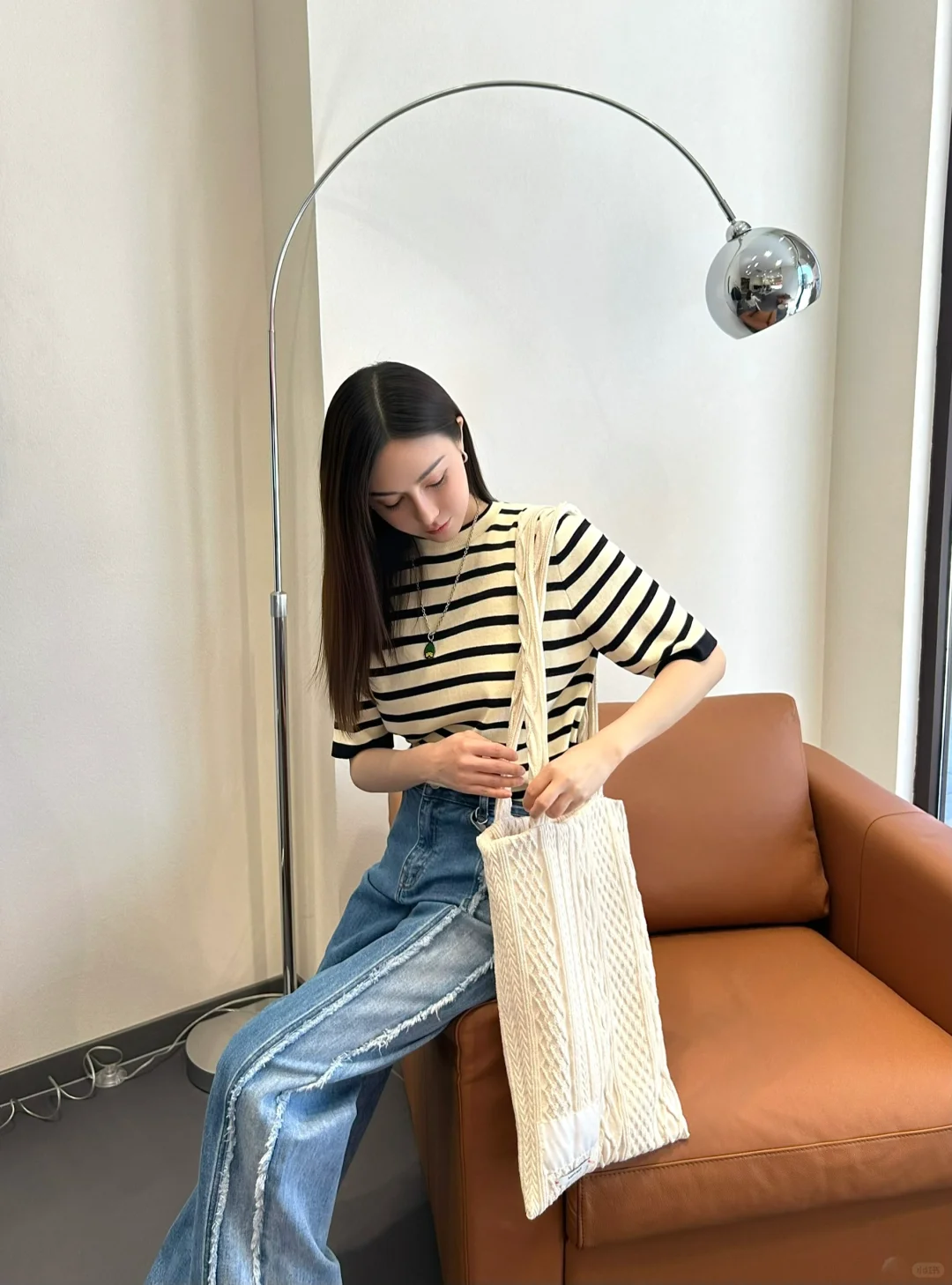 上身海军风条纹上衣,搭配宽松版型牛仔裤👖,牛仔裤的拼接和毛边设计是点睛之笔,经典老钱风;另一套是一条黑色连衣裙👗,也是有拼接设计,虽然是纯色仔细看却不简单,不是修身款,比较减龄大气~