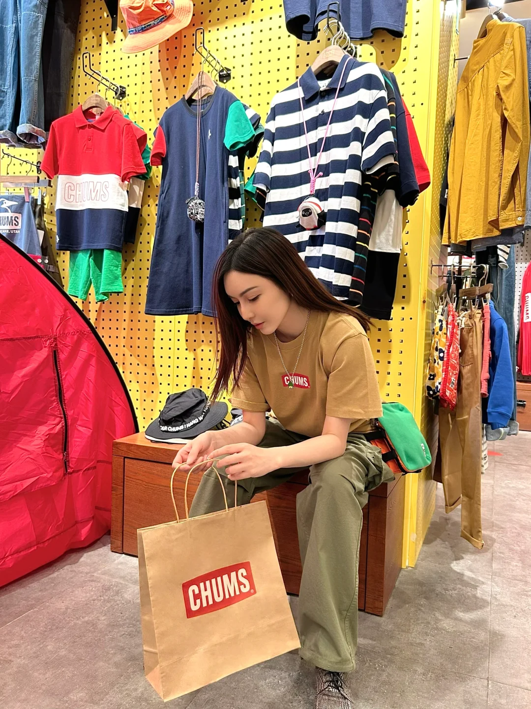 这次特意来逛,上身了两套look,一套是冲锋衣套装🧢,轻薄透气又防风,非常适合这个季节☀️;还试了卡其色纯棉T,搭配了墨绿色工装裤,是我日常跳舞会穿的vibe🛹,户外品牌穿出街头时髦的感觉很轻松~