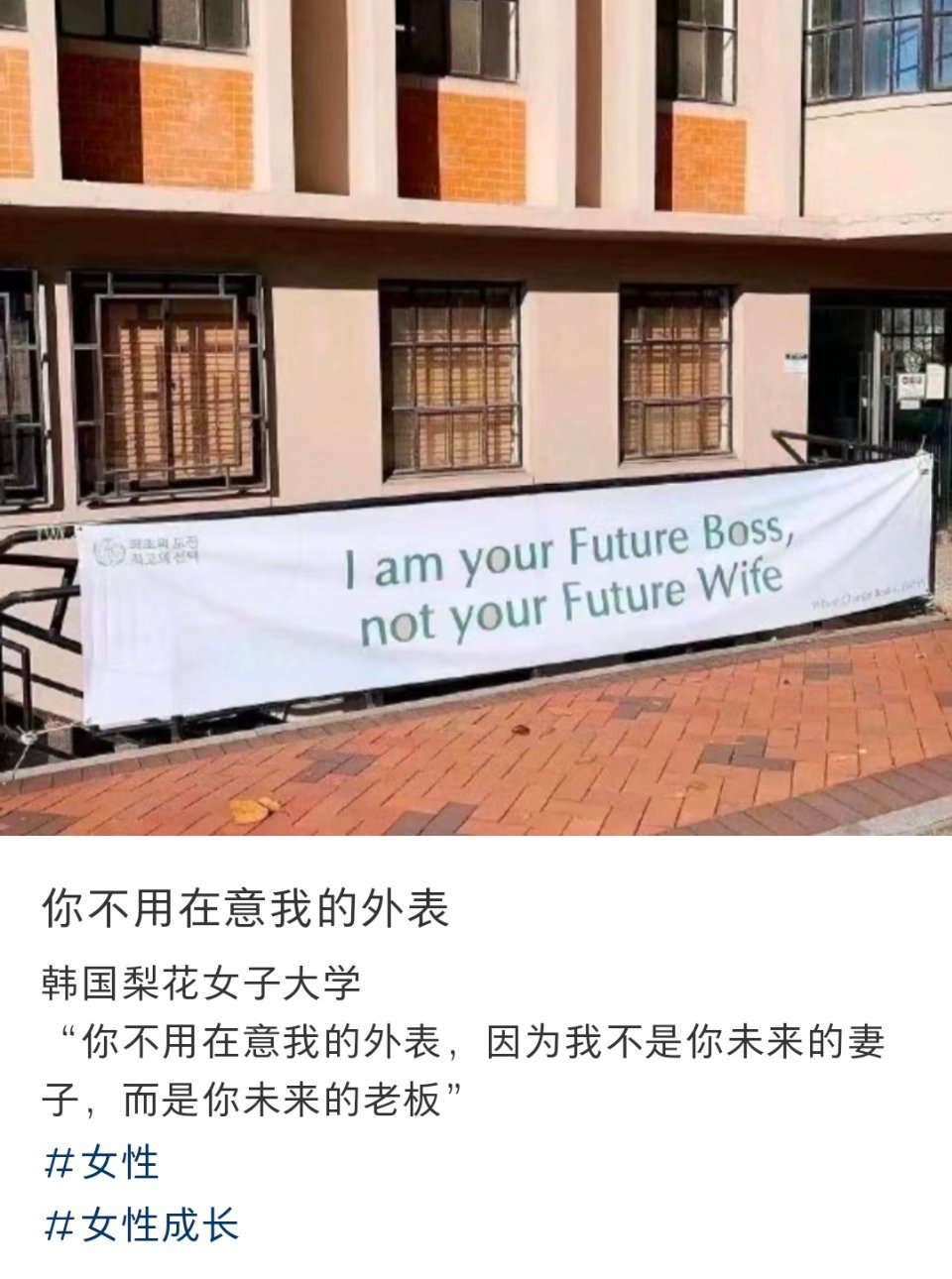 图一为留学男中介说的话,图二为梨花女子大学的横幅。