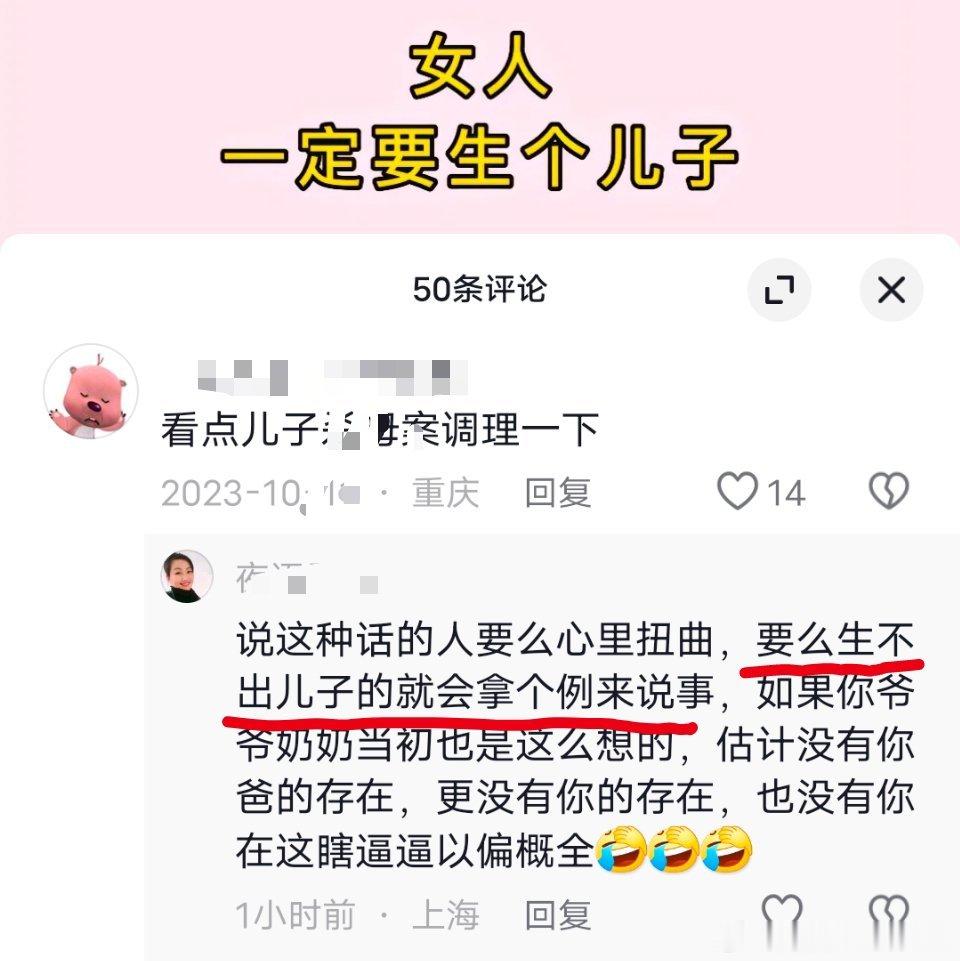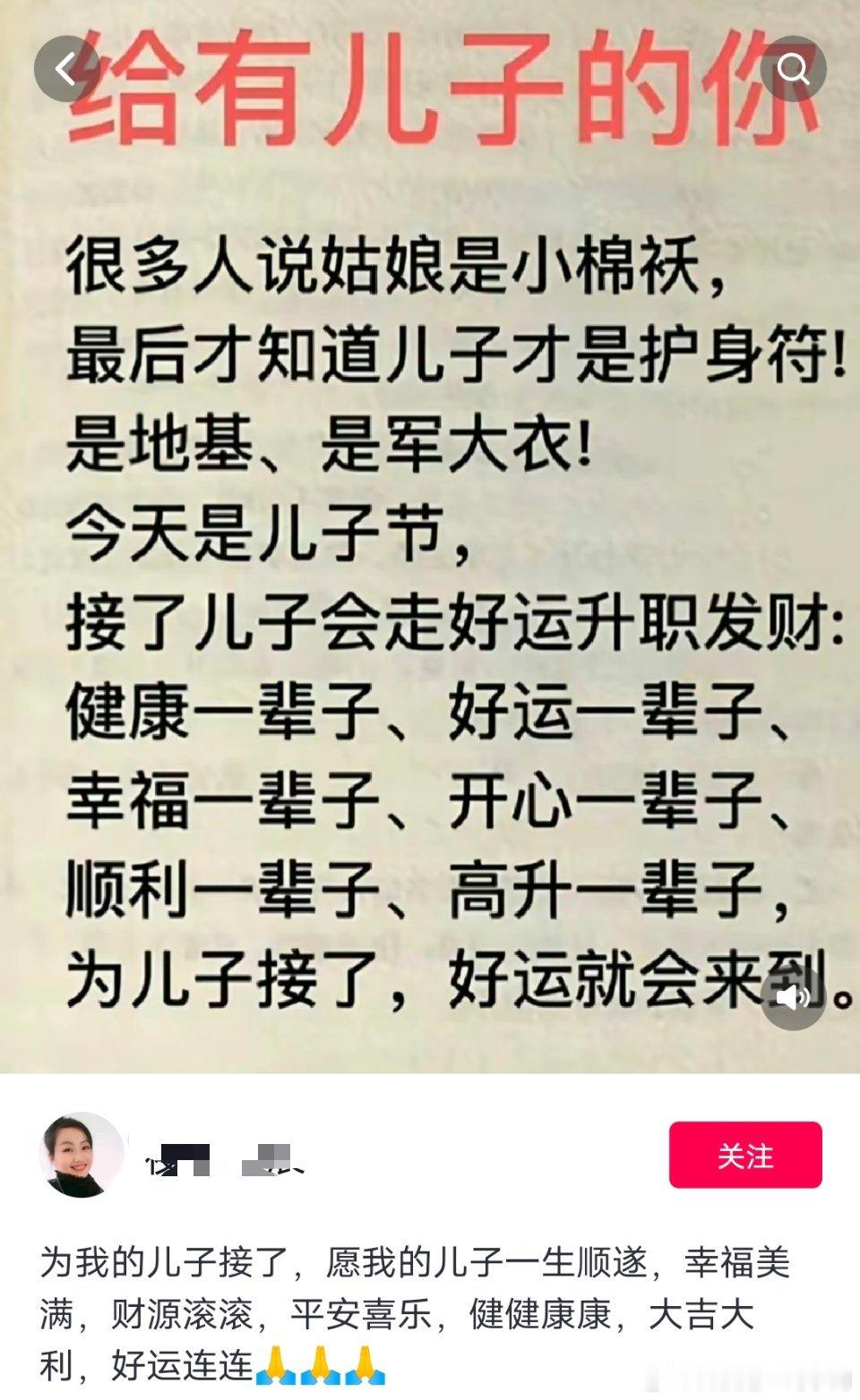 儿子是护身符、是地基、是军大衣!你们这些生不出儿子的就是在羡慕我们[酸]