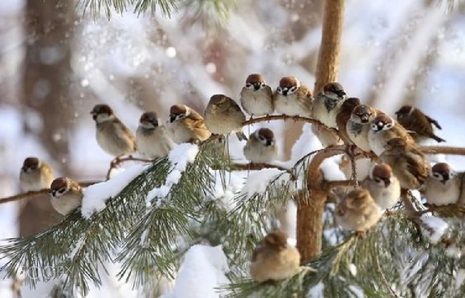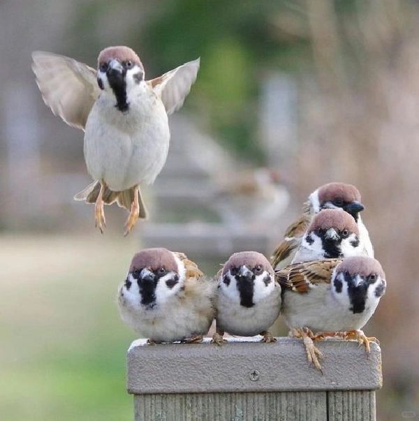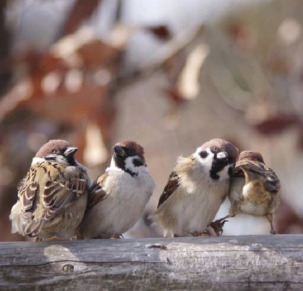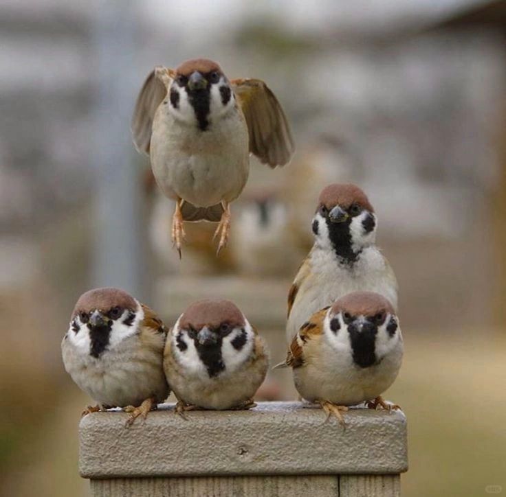 🍀生活习性:树麻雀性喜成群,除繁殖期外,常成群活动,特别是秋冬季节,集群多达数百只,甚至上千只。一般在房舍及其周围地区,尤其喜欢在房檐、屋顶、以及房前屋后的小树和灌丛上,有时也到邻近的农田地上活动和觅食。每个栖息地都有较为固定的觅食场所如场院、猪圈、牲口棚和邻近的农田地区,活动范围多在1-2千米内。在屋檐洞穴或瓦片下的缝隙中过夜,也有在房舍或村旁附近的岩穴、土洞和树上过夜和休息的。性活泼,频繁的在地上奔跑,并发出叽叽喳喳的叫声,显得较为嘈杂。若有惊扰,立刻成群飞至房顶或树上,一般飞行不远,也不高飞。飞行时两翅扇动有力,速度甚快,大群飞行时常常发出较大的声响。性大胆,不甚怕人,也很机警,在地上发现食物时,常常先向四周观看,无危险,才跑去啄食,或先去几只试探,然后才有更多的鸟陆续飞去,稍有声响,立刻成群惊飞。