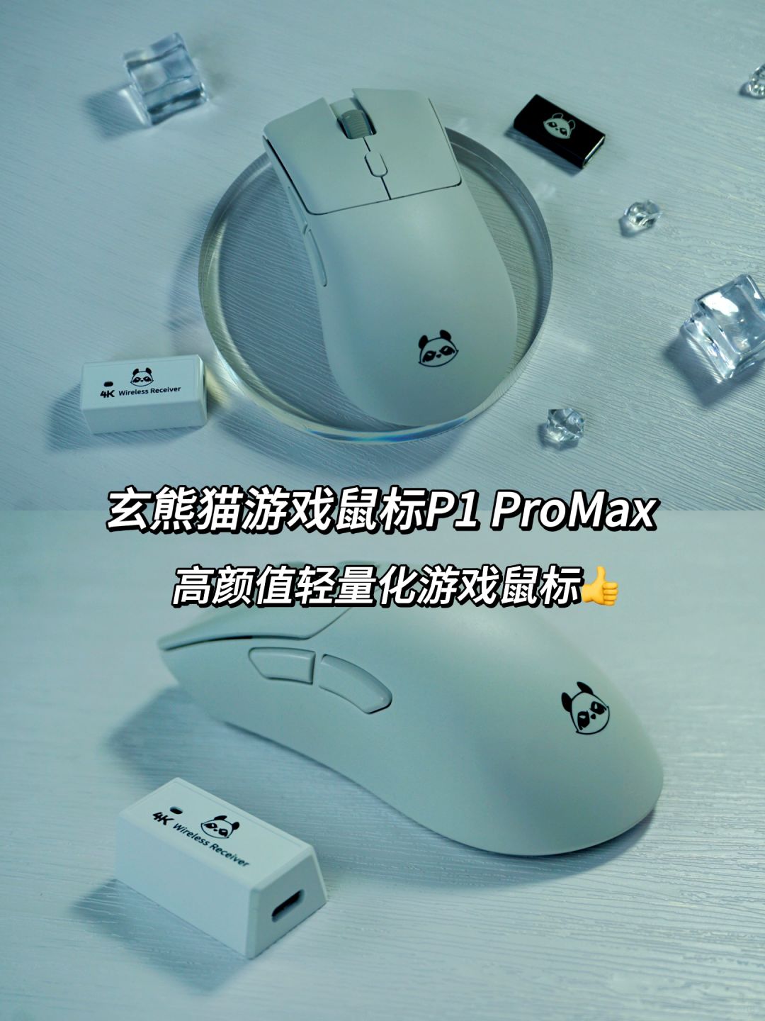 🌈玄派玄熊猫这款鼠标我觉得是国产鼠标里,卷的比较厉害的了,有P1,P1Pro,P1 Pro Max三款,价格也是不同的,我们今天评测的这个是3395款,售价249元,然后配置也算是比较不错的,主控是Nordic52840,这个主控特别的稳定,而且价格不便宜,相对来说成本比较高,我看了看,用了PAW3395传感器的鼠标,这个传感器是真的不错的,稳定性OK,再就是轻量化的设计,这款鼠标握在手里挺饱满的一个感觉,而且很轻巧,就不到80克的重量,送了几个贴纸,同时也是防滑贴纸,既能保证这个颜值,也能保证这个质感,挺好,像我们拿到的这个Pro Max版本,还是💓