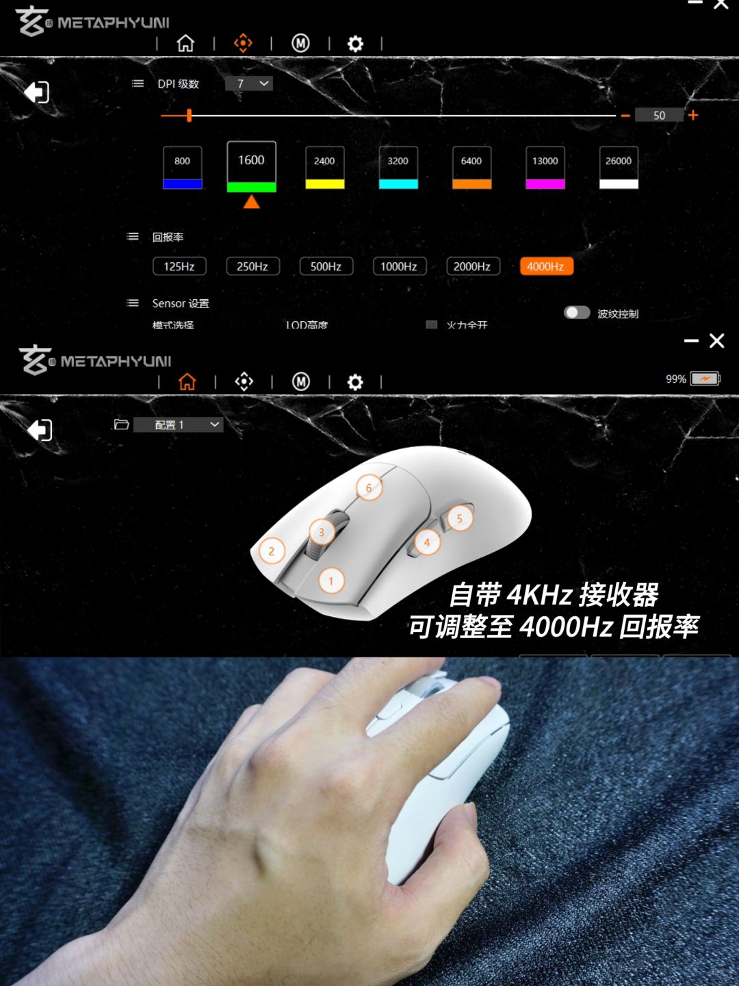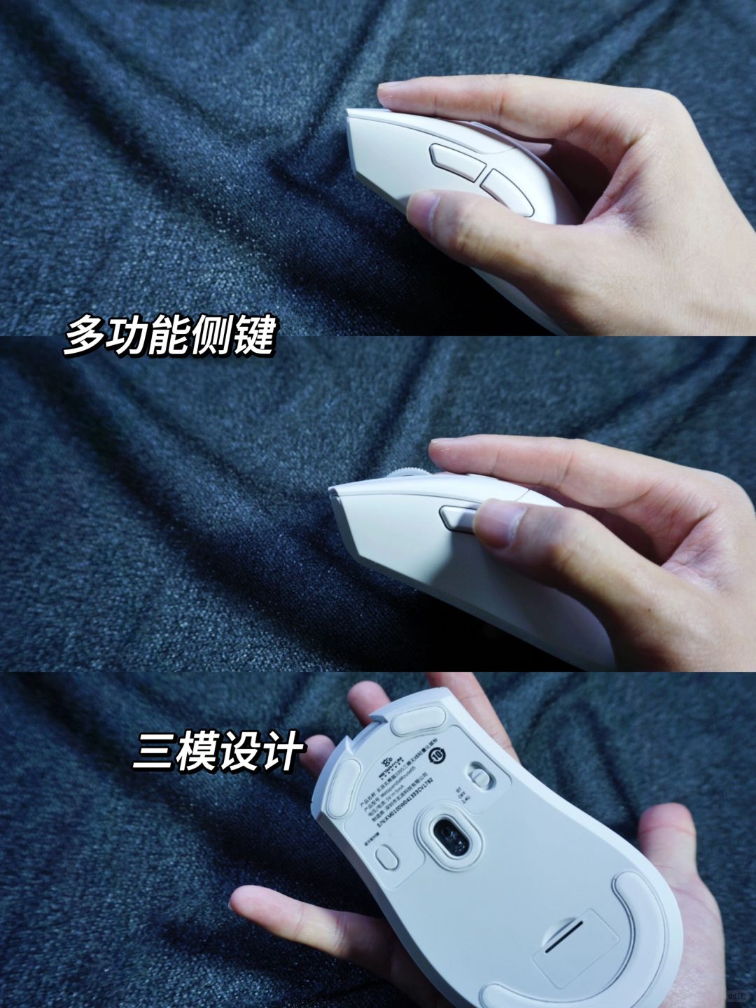 🔺个人体验:我个人感觉就是打游戏很爽,而且支持4KHz轮询率,真的打游戏贼跟手,然后像原神,或者说CSGO需要用连招或者是需要一定的鼠标操作的话,体验会比较好,白色的这个款颜值挺高的,我挺喜欢,玩游戏的可以入一个