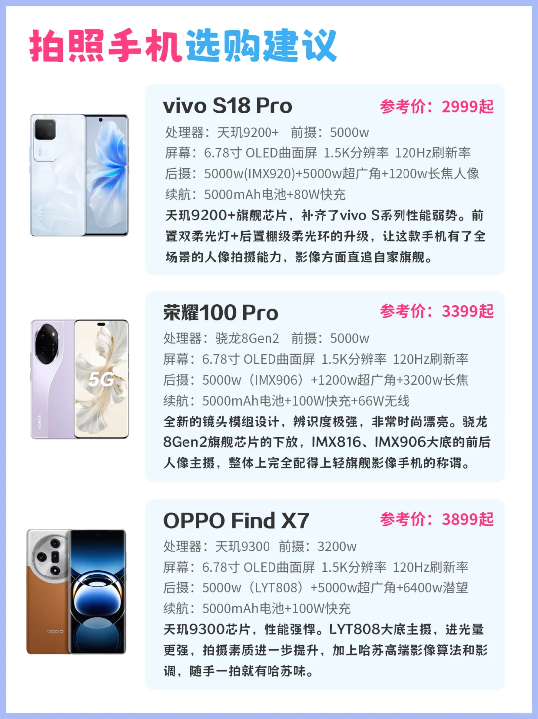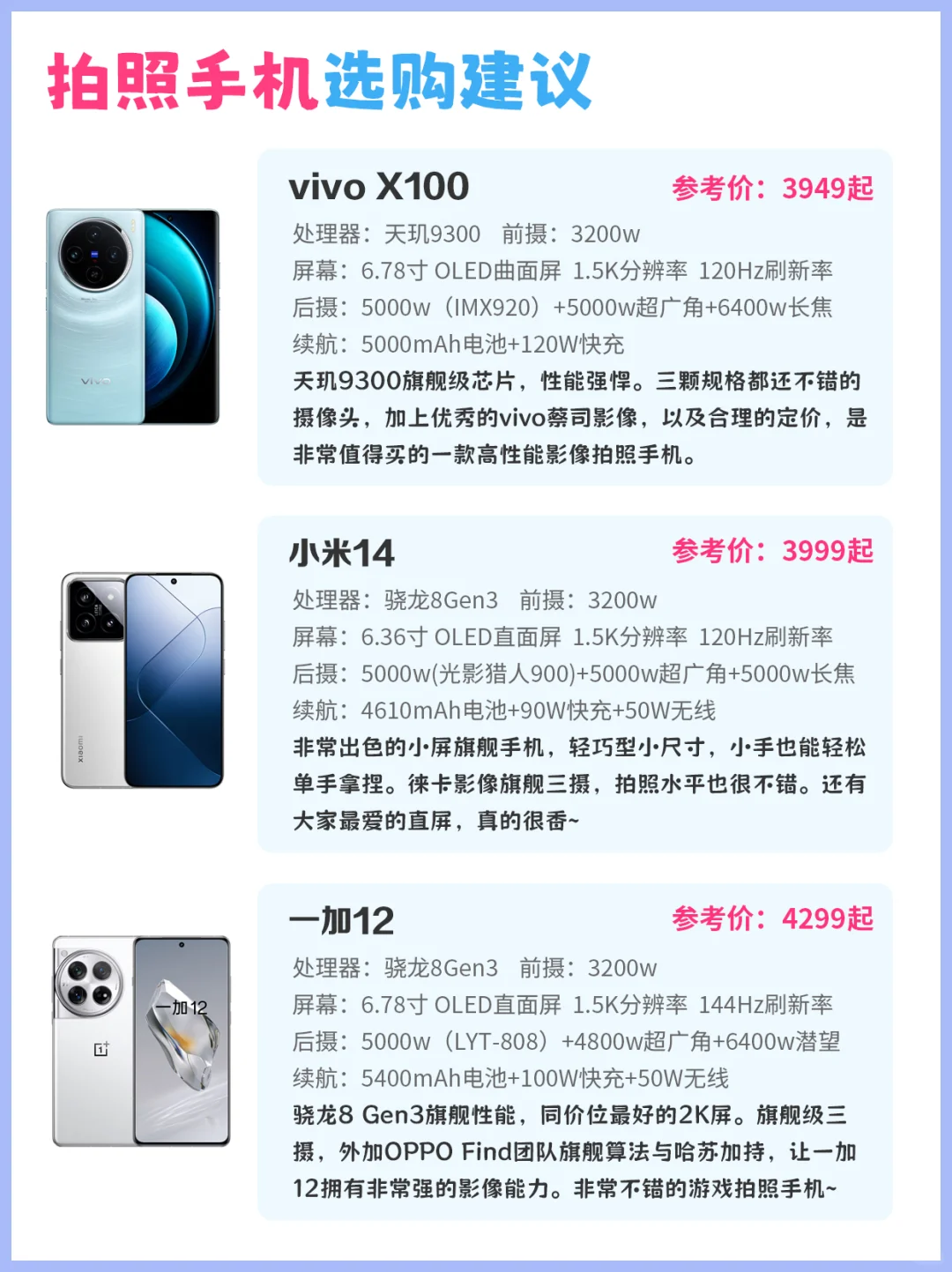 👉如果预算充足,那当然是直接入手顶级旗舰即可,各家的顶级旗舰拍照能力都很强大。