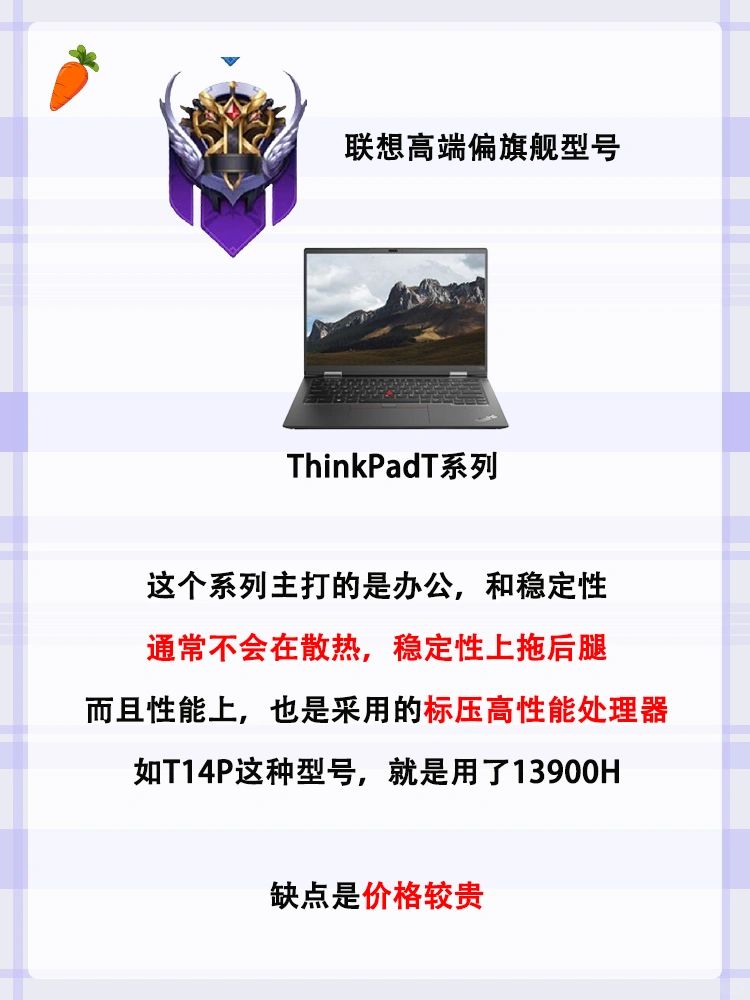 2️⃣ThinkPad系列,这个系列主要是商务人士买的比较多,这个系列的电脑,通常价格比较贵,不太适合学生购买,但是它自带的小红点特别适合经常出差的用户选择,因为那个小红点是压力感应,可以当做一个鼠标的操作杆,特别的好用,可惜价格太贵了