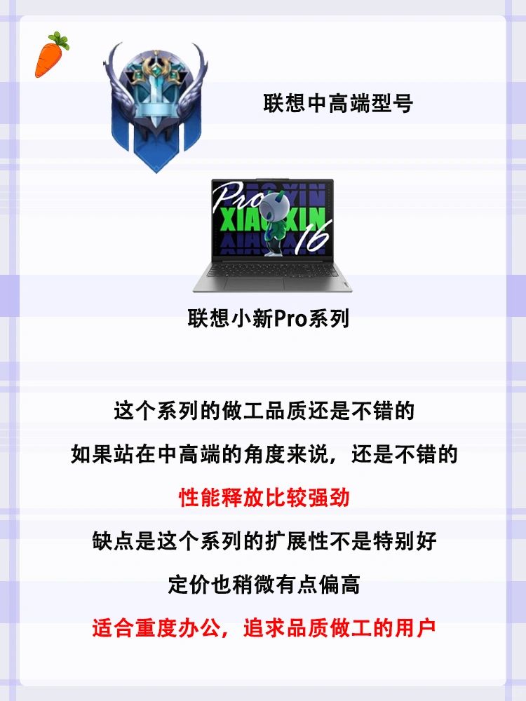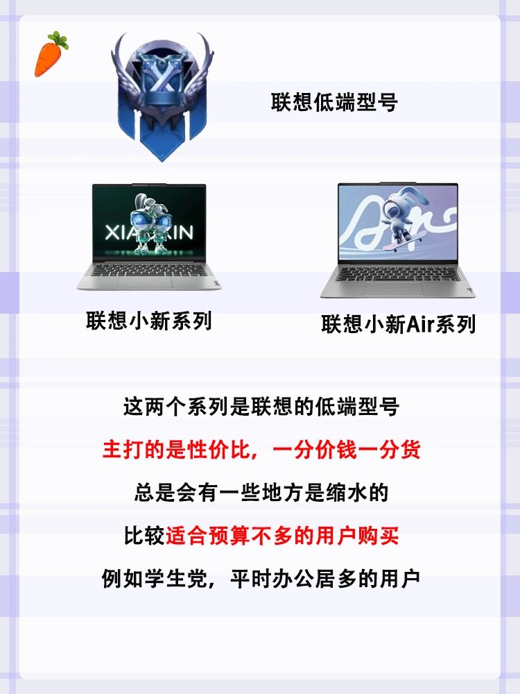 💓说到联想电脑,可能男生脑子里优先出来拯救者,而女生脑子里可能会优先跳出来联想小新,联想电脑现在到底怎么样?哪些系列能买,哪些系列避雷呢?今天氢源用一张图教会大家,如何来看联想的各各系列🤔(下一期出游戏本的)