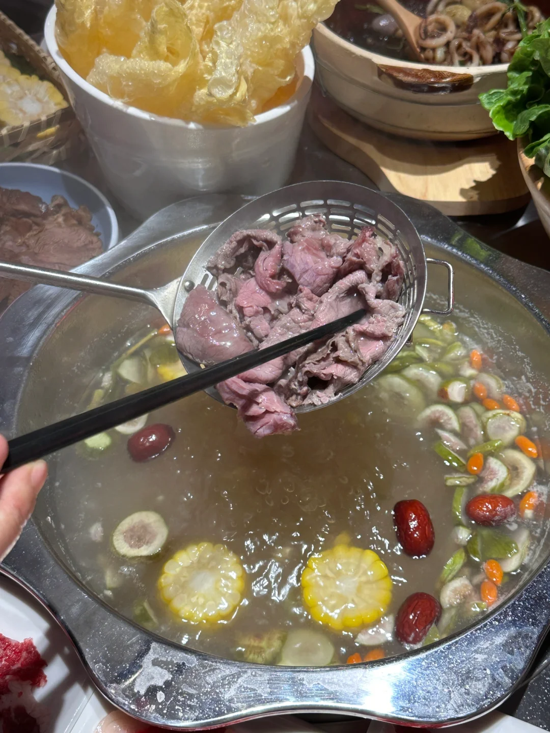 不夸张!!这家真的是我吃过又便宜又好吃的牛肉火锅!!胸口油我可以干三盘!!! 牛肉现切每天现杀!无花果清汤锅底又暖胃又好吃~