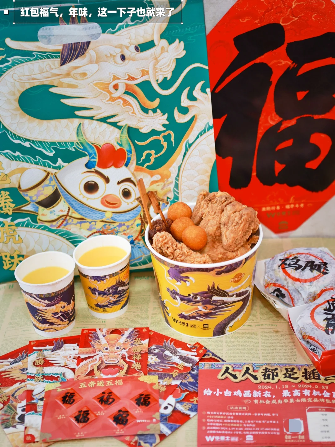 🎏CityWalk一定要和吃吃吃关联起来,最近有个小惊喜,guohuo之光华莱士x宫里的世界联名推出了新春五福桶,被包装上的图纹吸引的,图纹取自故宫文物的图案,真的是好看又好吃!