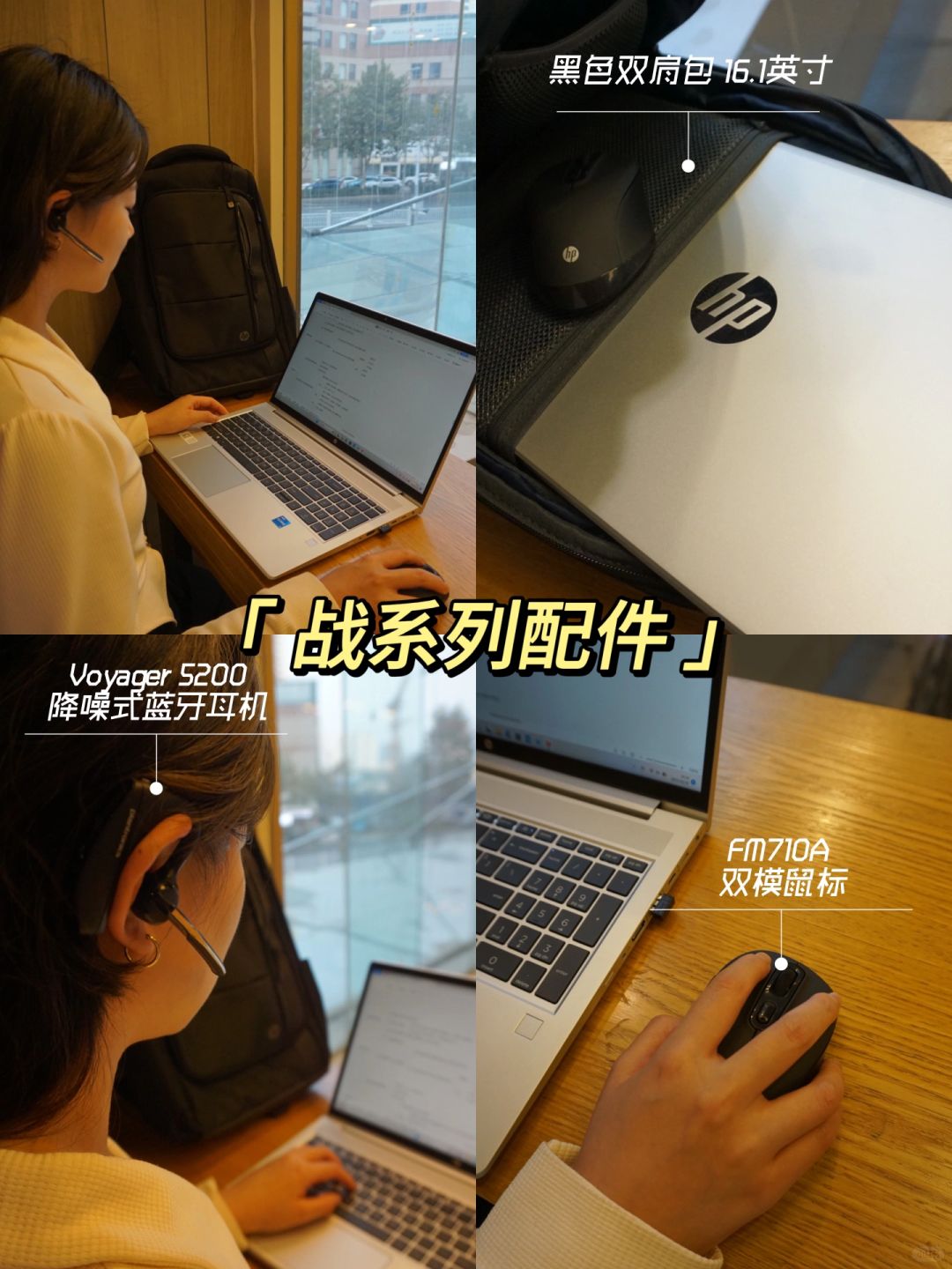 💗更棒的是战系列配件齐全,搭配办公不要太高效了。这款惠普FM710A无线蓝牙双模鼠标,不习惯使用触控板的小伙伴可以入,表面采用类肤材质,很轻巧,装进惠普黑色双肩背包外出真的绝了