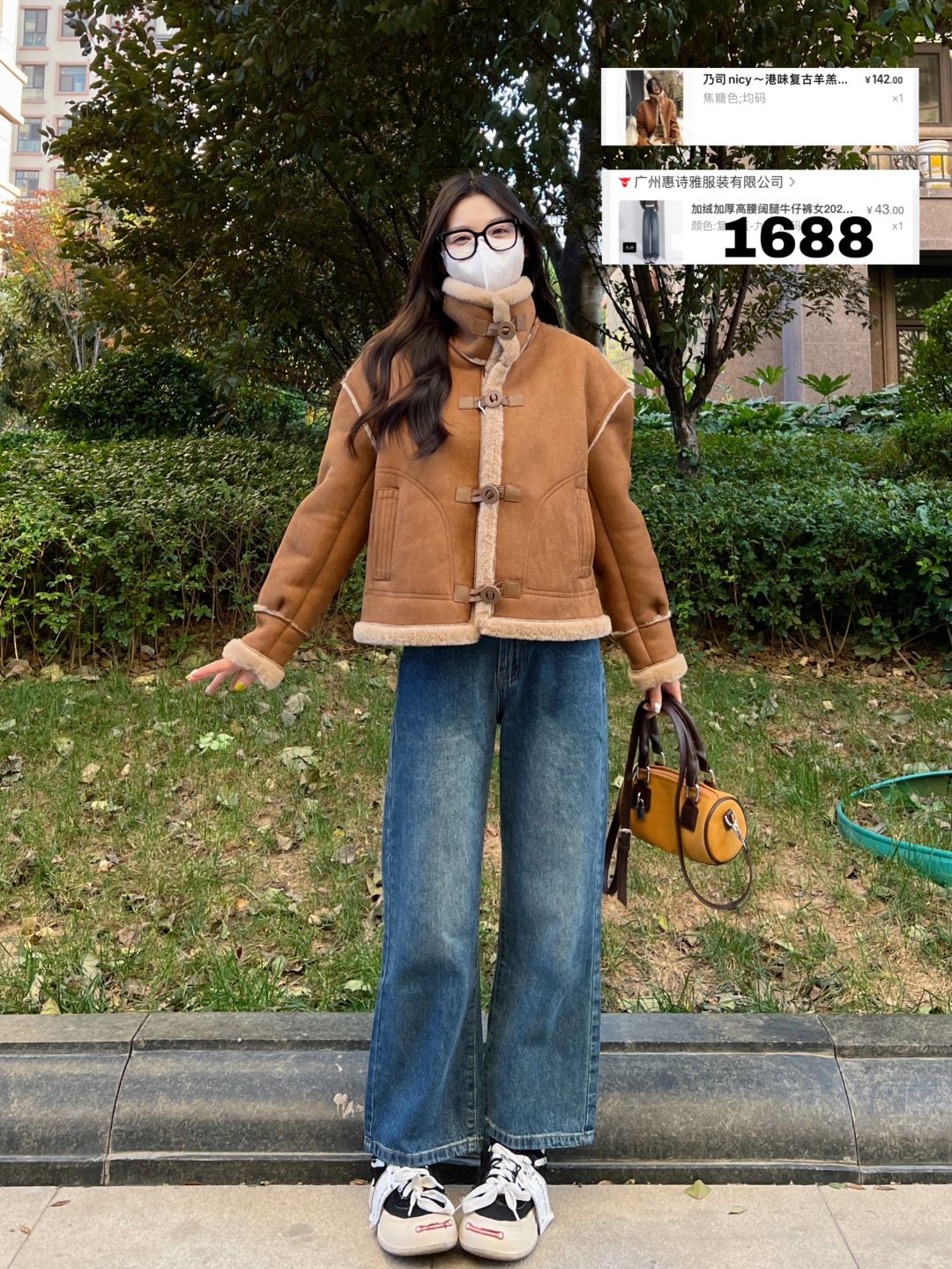 50r黑色棉服➕100r棕色羽绒服➕40r牛仔裤