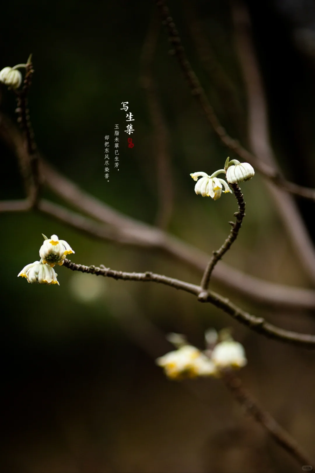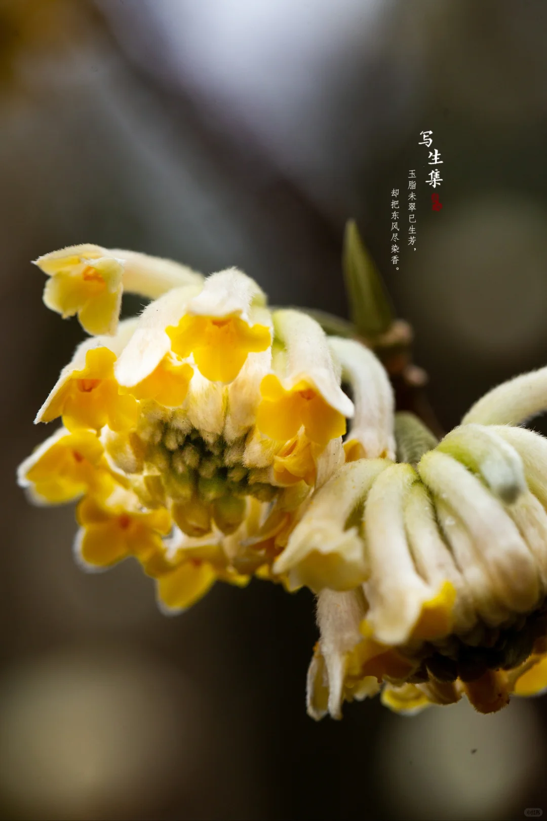 结香(Edgeworthia chrysantha Lindl.)是瑞香科、结香属植物。结香树冠球形,枝叶美丽,姿态清逸,花期冬末春初,果期春夏间。