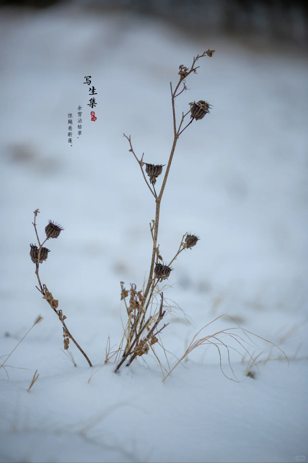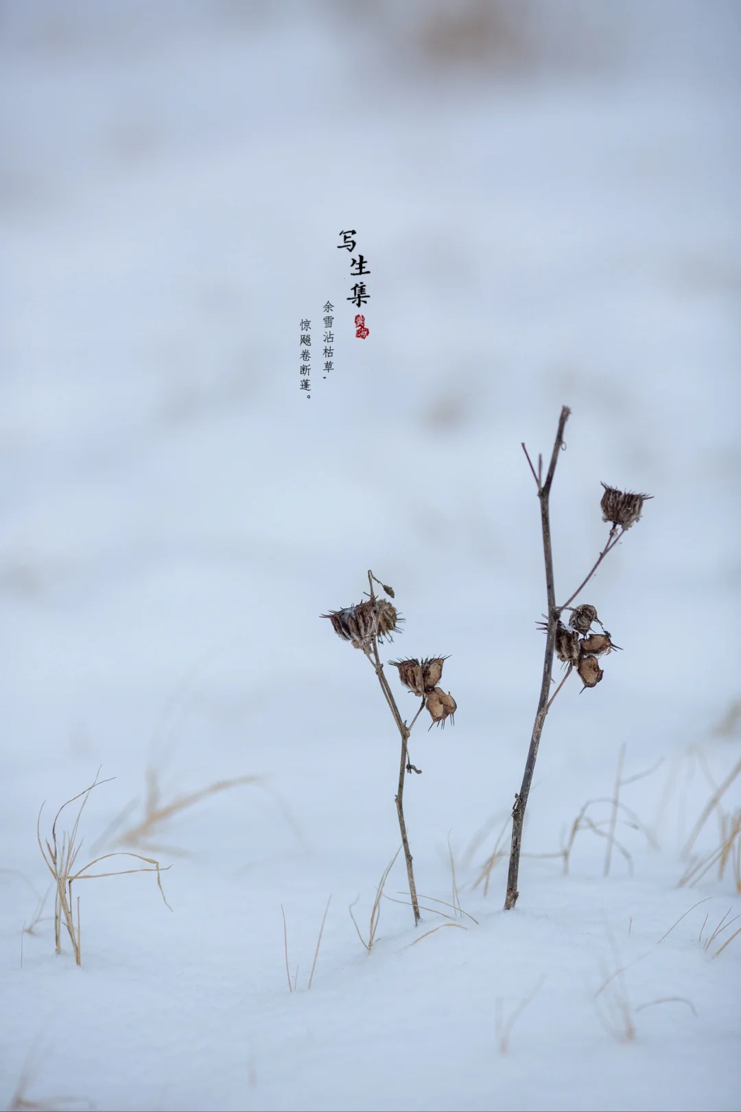 余雪沾枯草, 惊飚卷断蓬。 ———