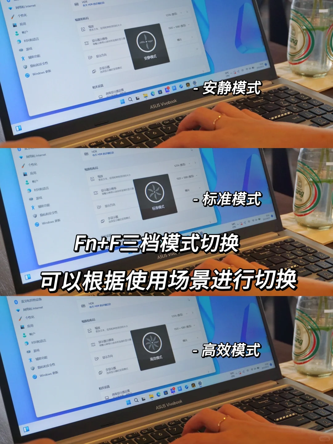 此电脑有三挡性能模式,可以通过FN+F进行切换,我们测评默认在高性能下进行跑分测试💓