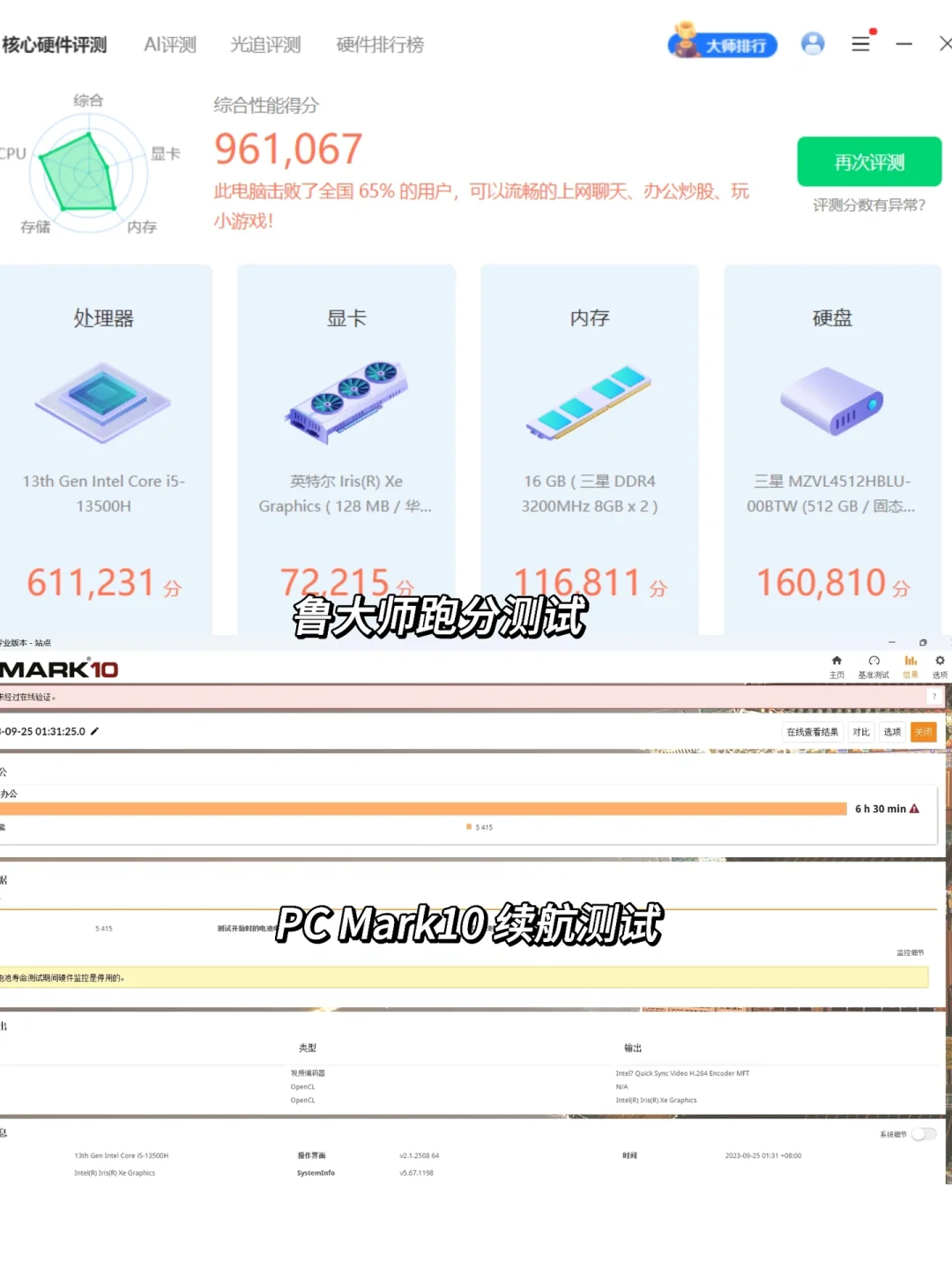 PC Mark续航测试:6.5小时(毕竟大屏幕,勉强原谅它吧,属于行业内中等水准)🔋🔋