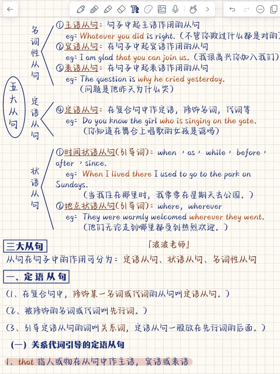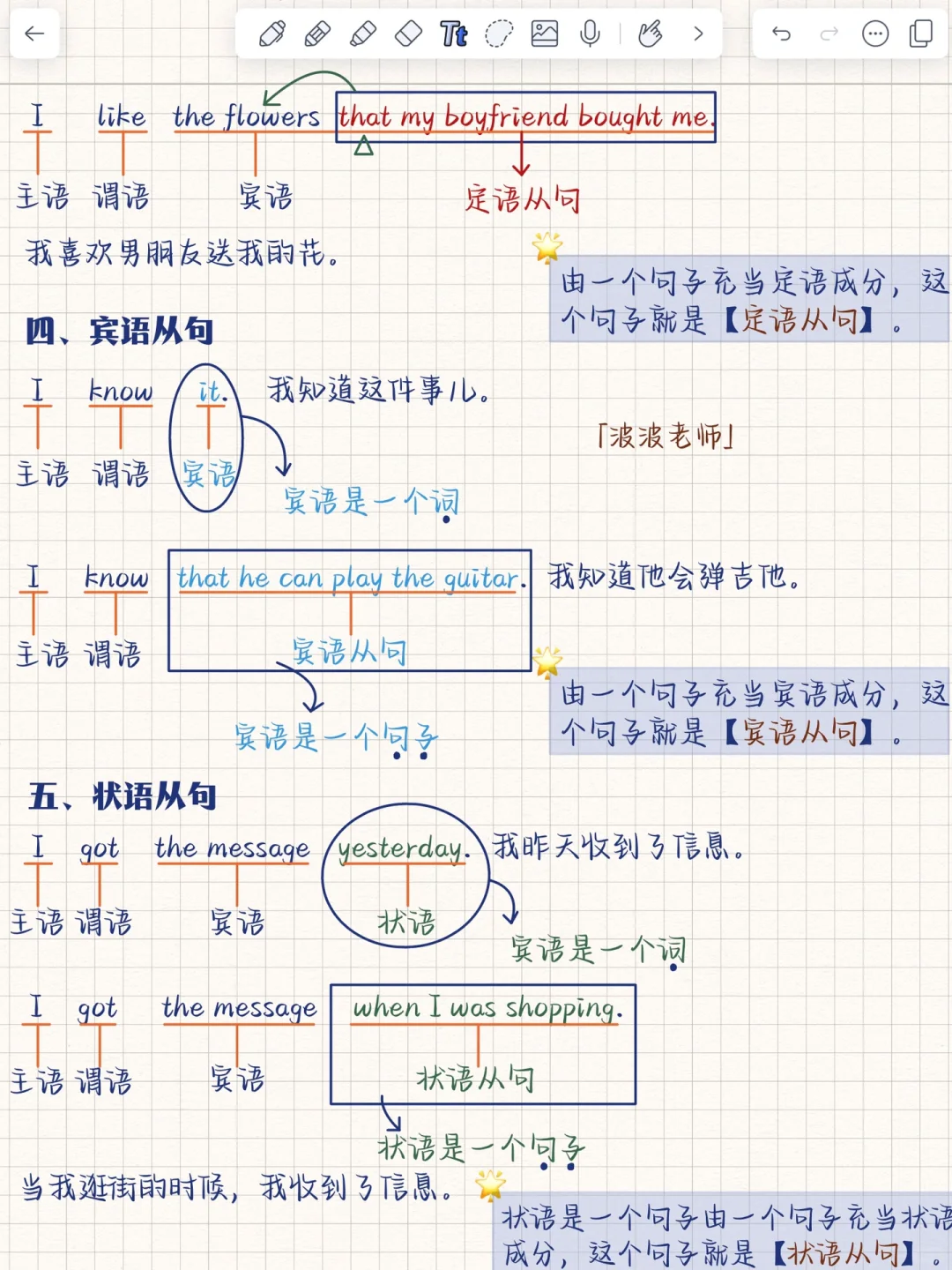 秒懂!英语5大从句‼️基础差救星!包括:定语从句、主语从句、状语从句、宾语从句、...