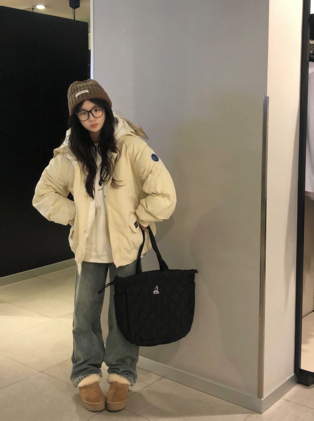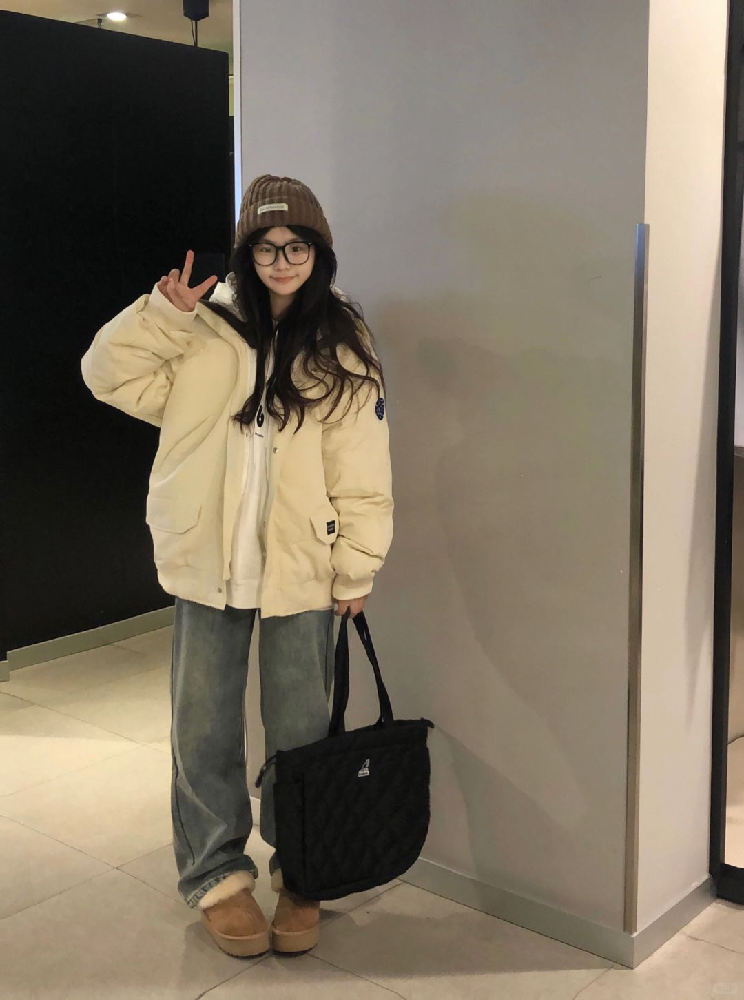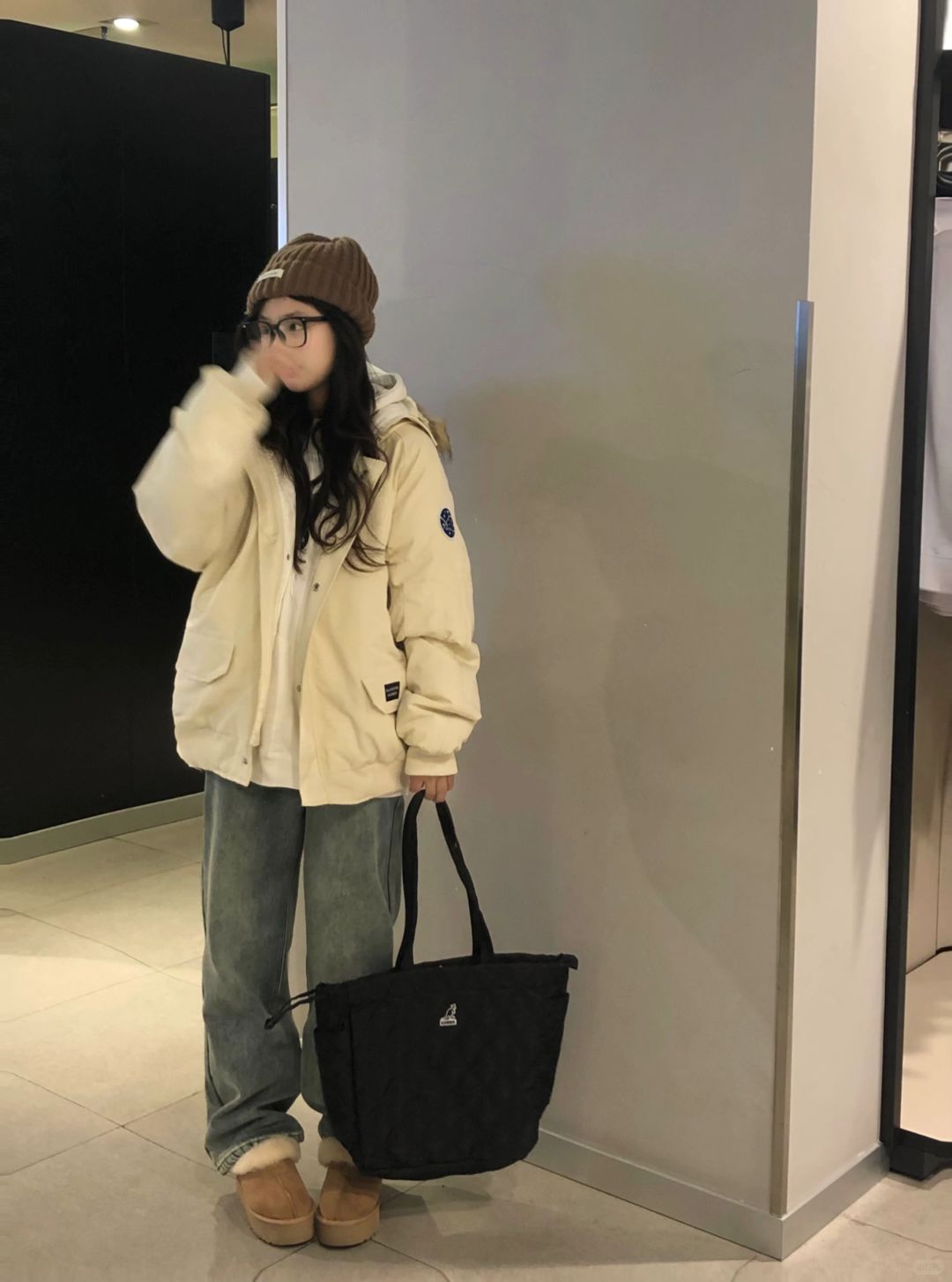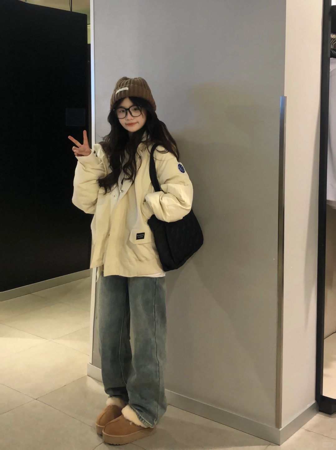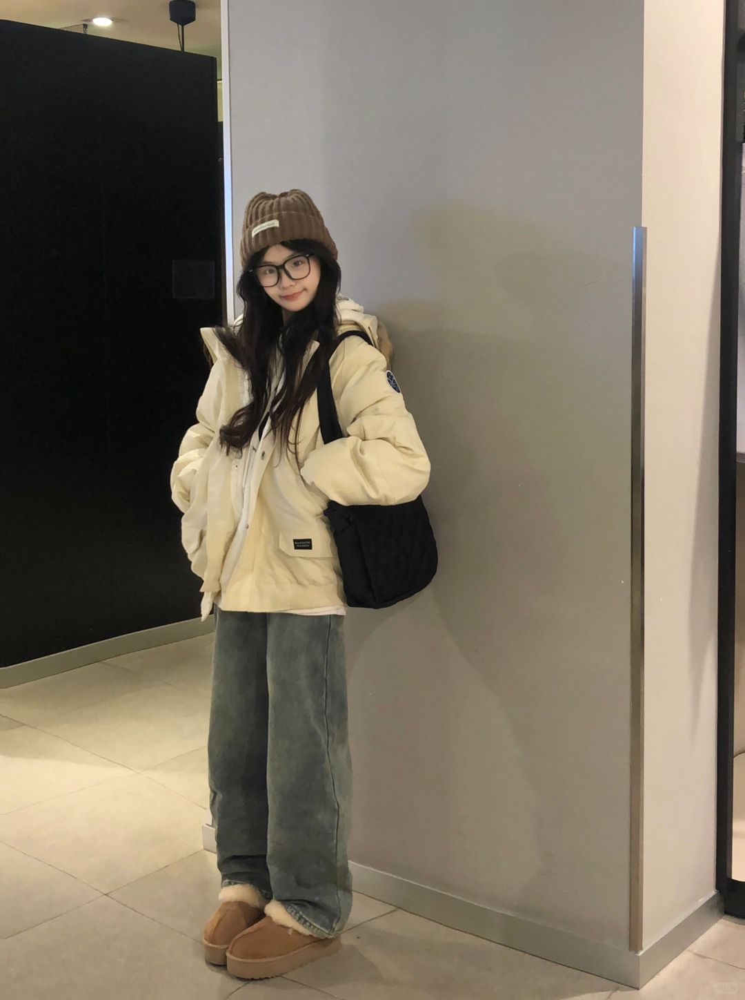 ❄️期待一下冬天!奶白色棉服➕棕色裤子好韩!