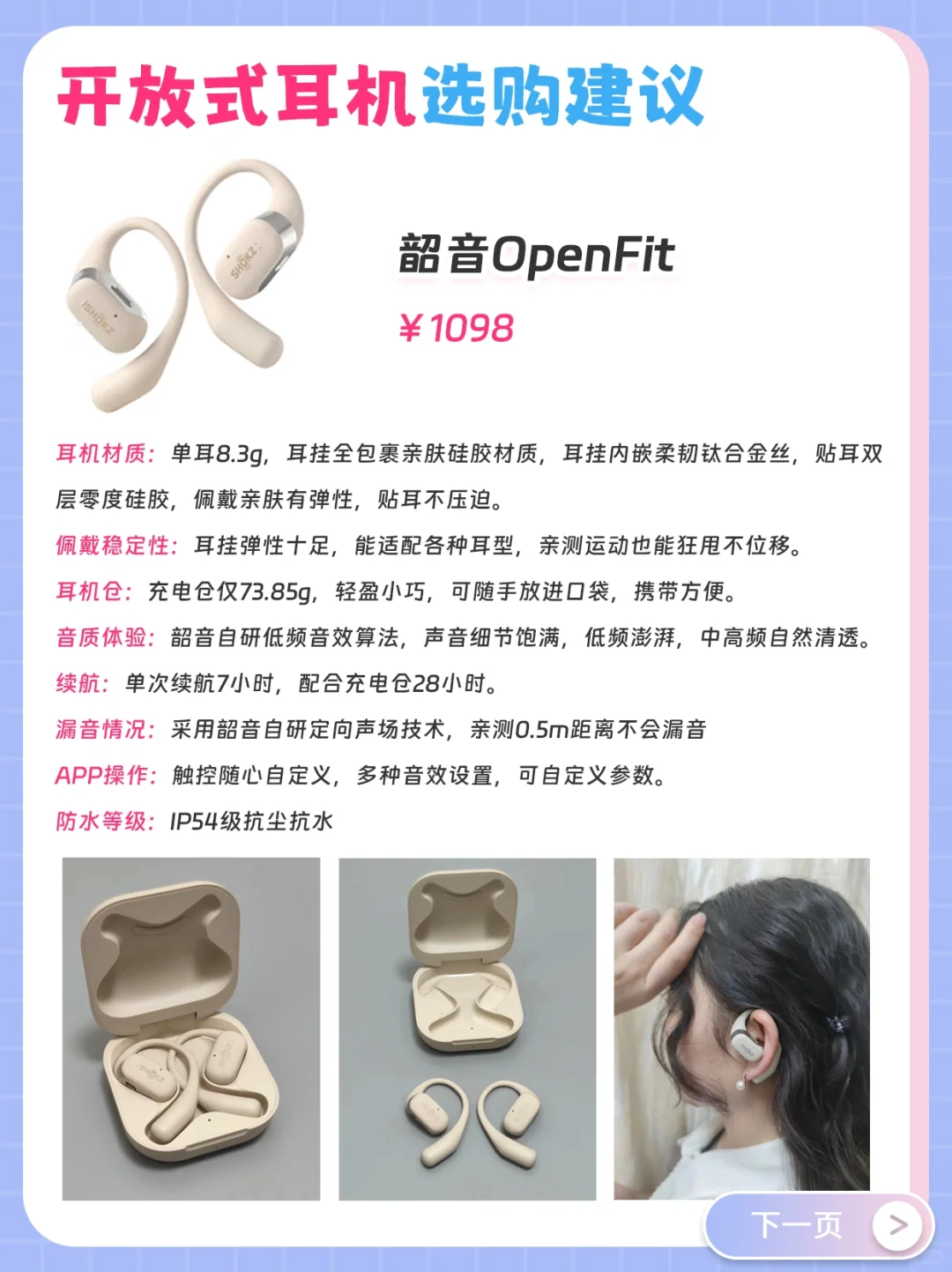 最近很火的开放式耳机不知道大家有没有了解~这类型的耳机相对于普通的入耳式或者头戴式耳机,舒适性会更好!而且更稳固,久戴不痛,戴着剧烈运动也不会掉~
