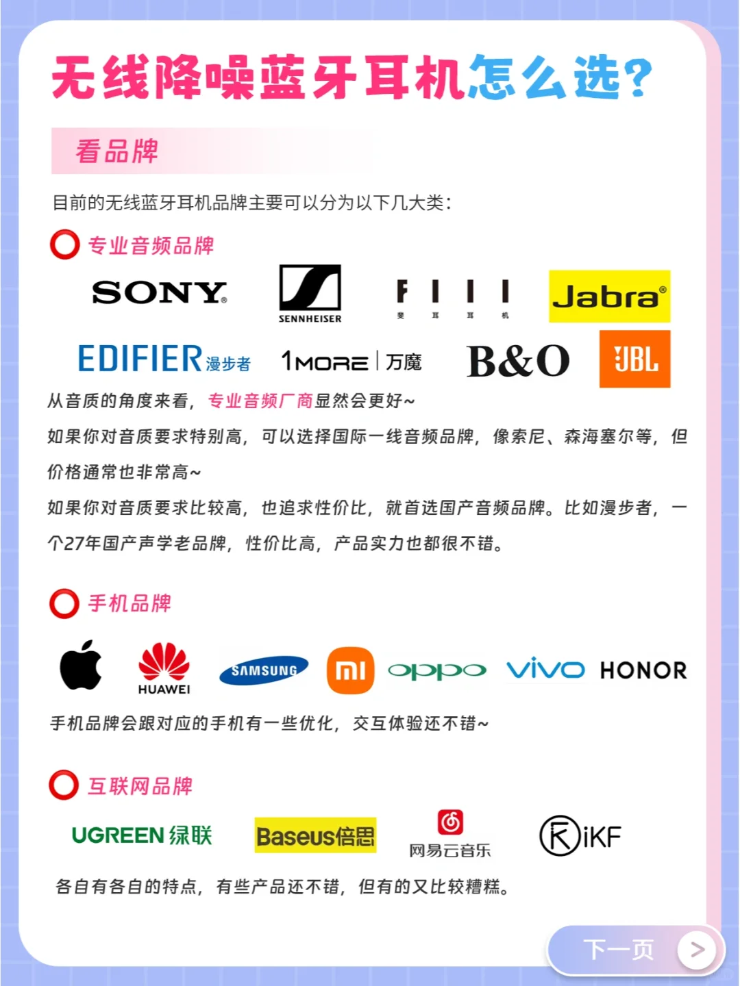 如果你对音质要求特别高,可以选择国际一线音频品牌,像索尼、森海塞尔等,但价格通常也非常高~