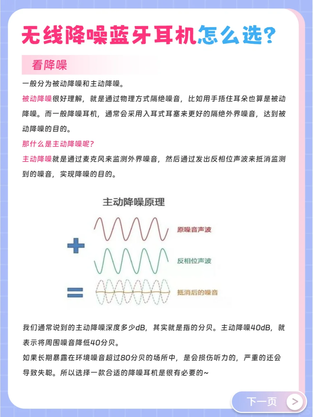 如果长期暴露在环境噪音超过80分贝的场所中,是会损伤听力的,严重的还会导致失聪。所以选择一款合适的降噪耳机是很有必要的~