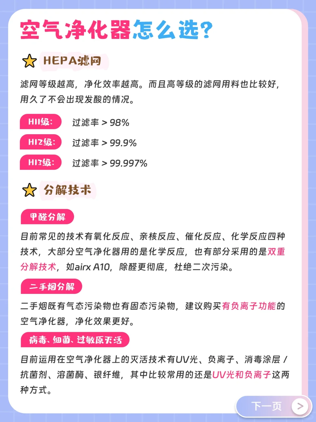 滤网等级越高,净化效率越高。而且高等级的滤网用料也比较好,用久了不会出现发酸的情况。