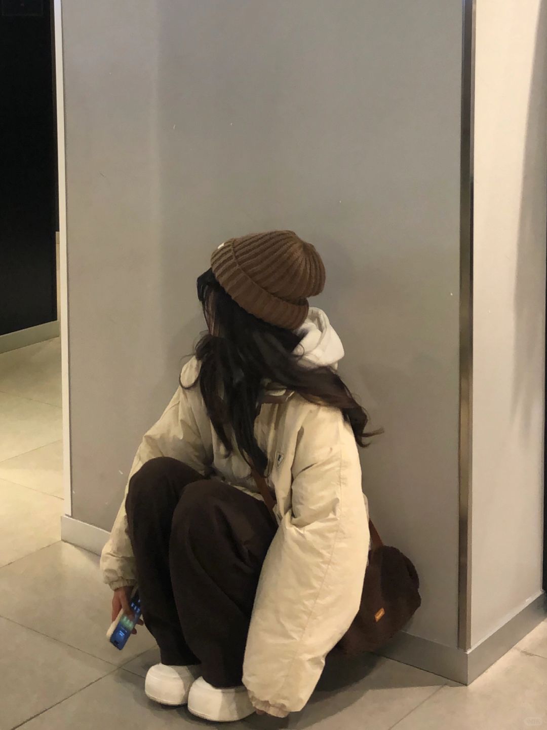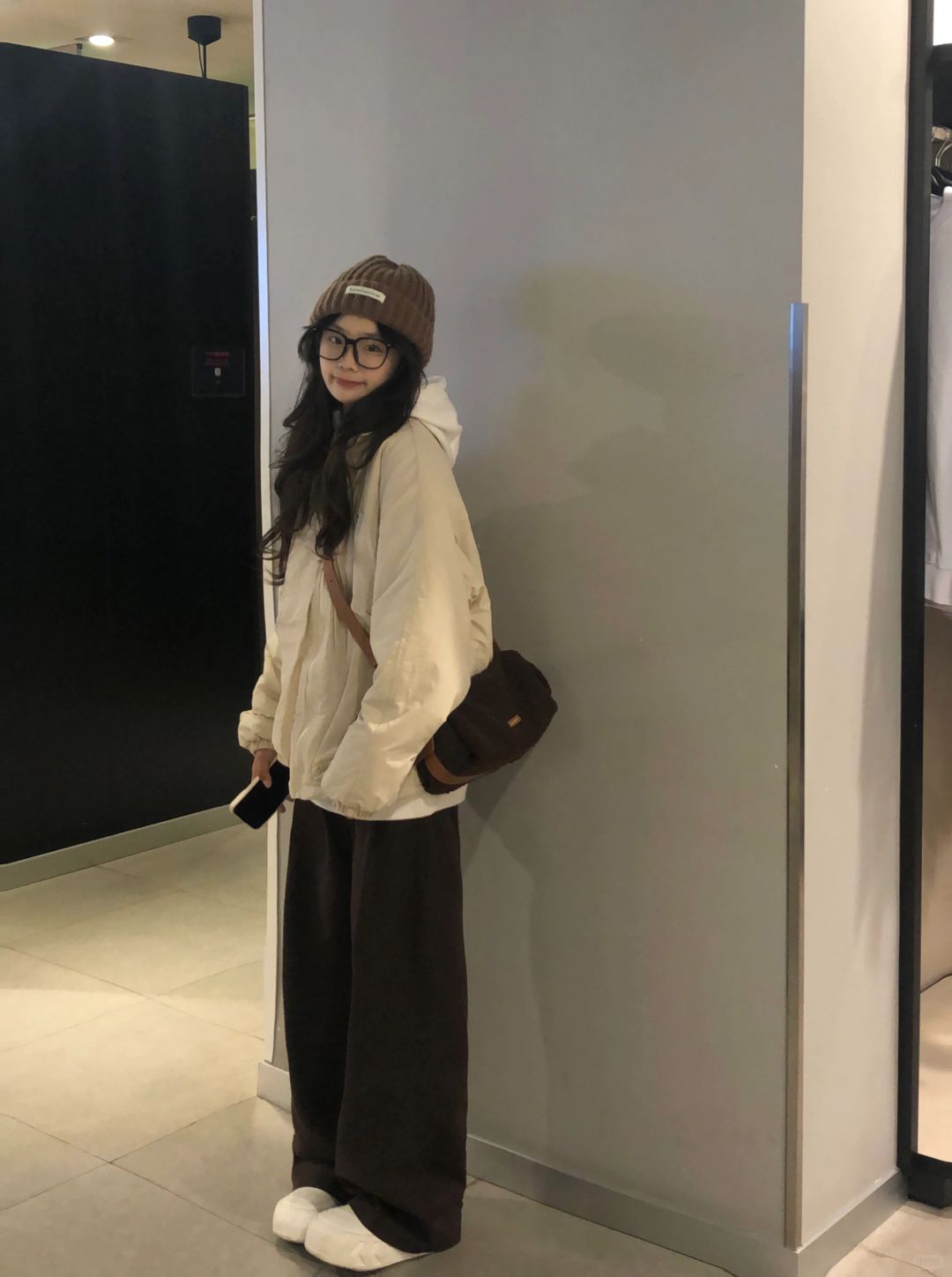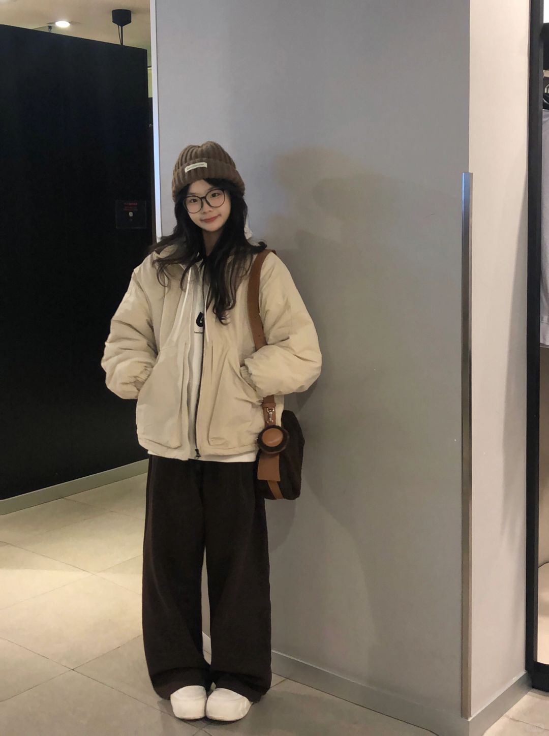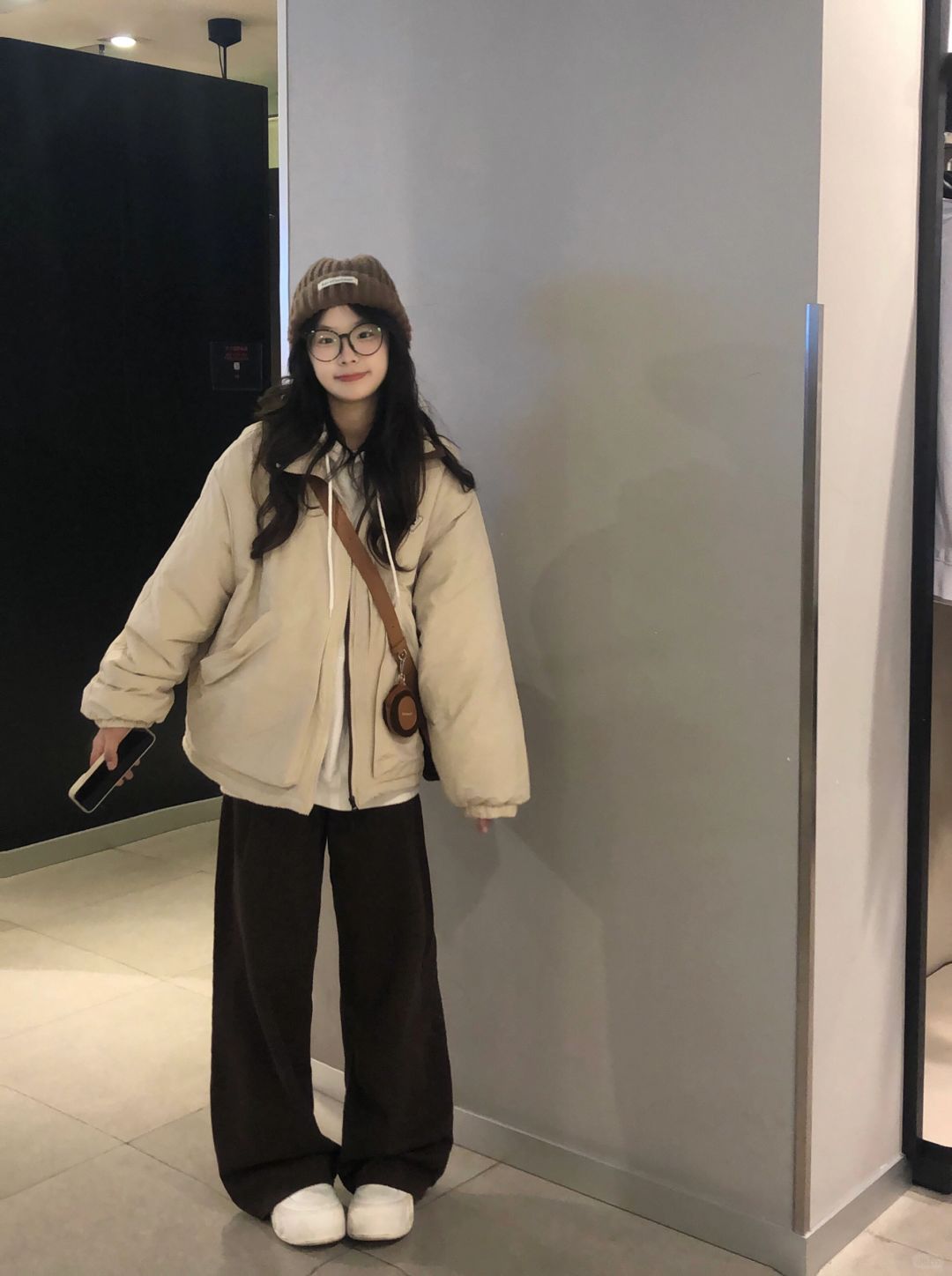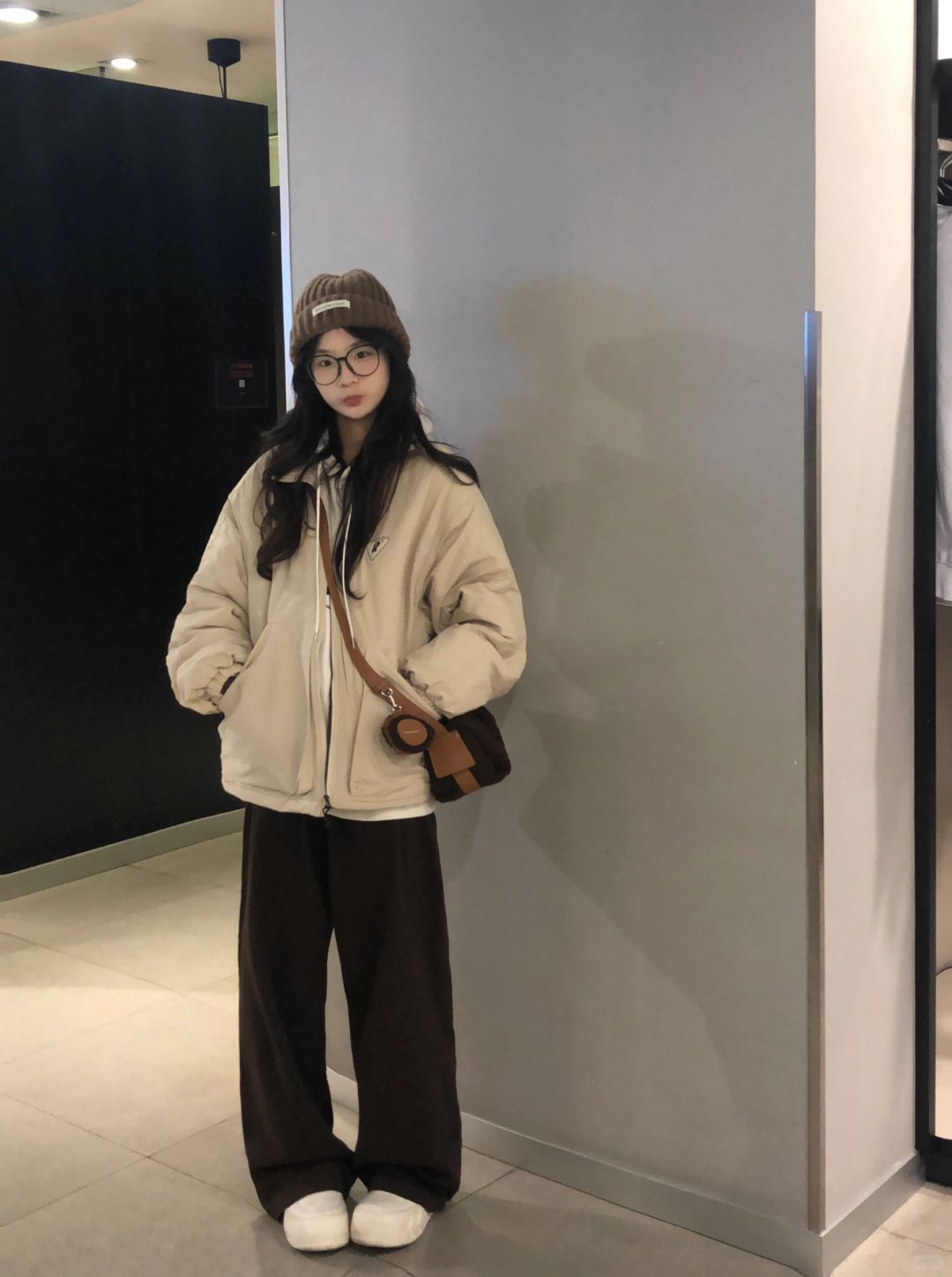 ❄️期待一下冬天!奶白色棉服➕棕色裤子好韩!