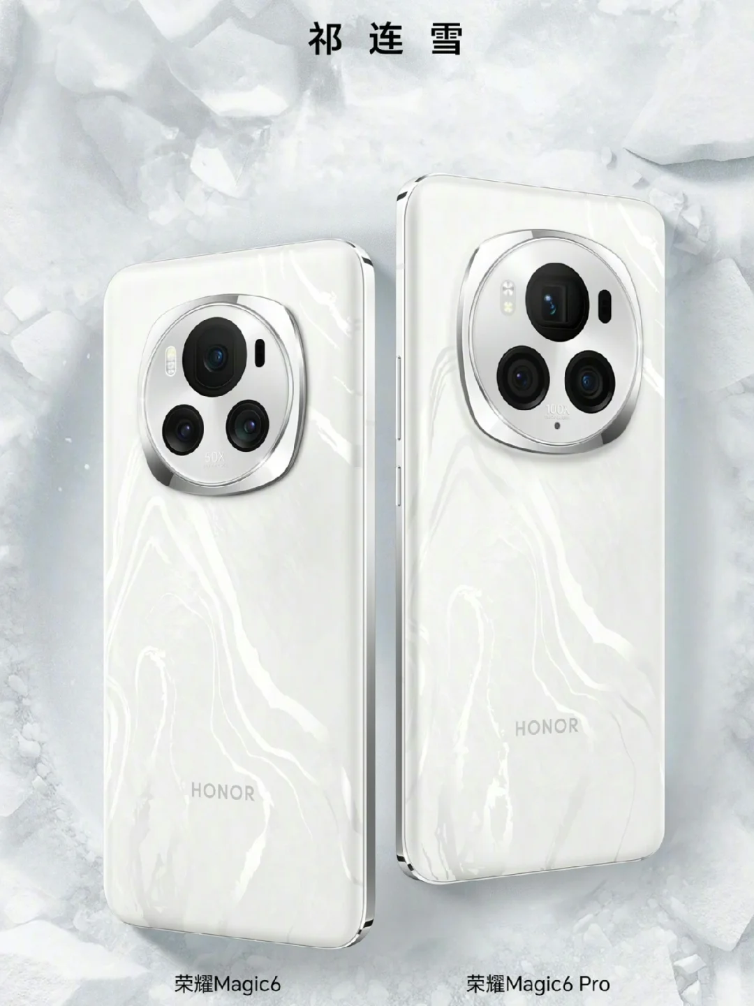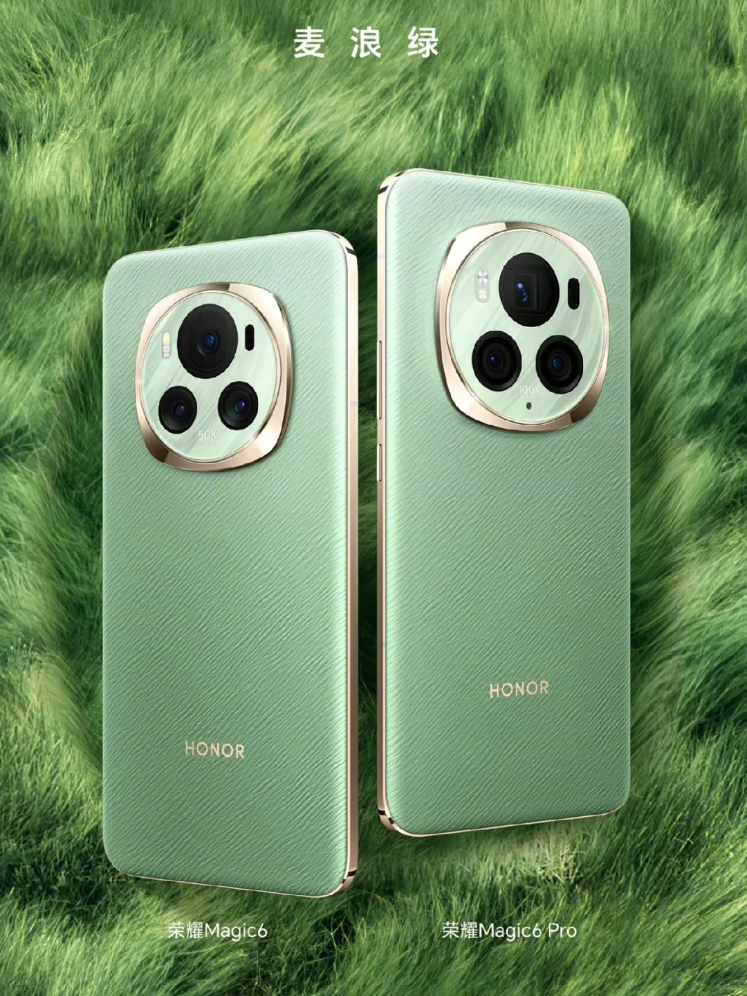荣耀真的太会了,把风景画到了手机背盖上,从方圆宇宙、天地构想中汲取灵感,探索全新设计形态。其影像模组内部延续“星轮三摄”排布,外部轮廓采用“枕形”设计,方圆之形结合,凝练成极具辨识度的全新设计。同时,荣耀Magic6系列还从华夏壮丽山河获取灵感,带来祁连雪、海湖青、流云紫,麦浪绿、绒黑色五种配色选择。
