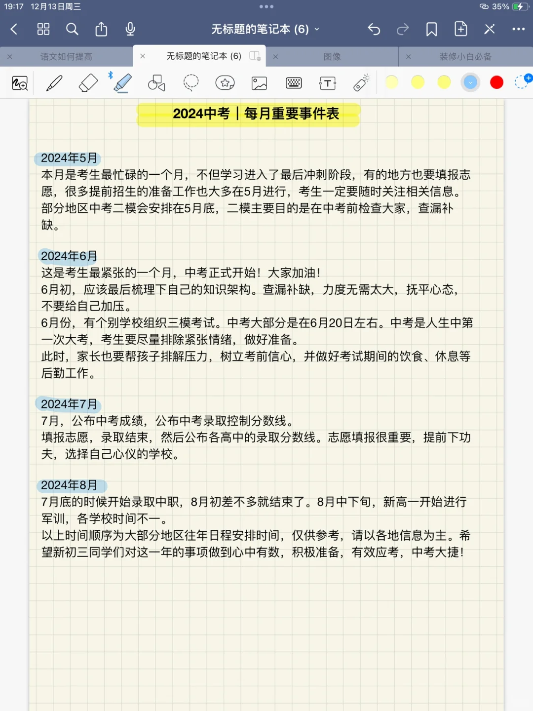 2024年中考,每月重要时间表,必须了解
