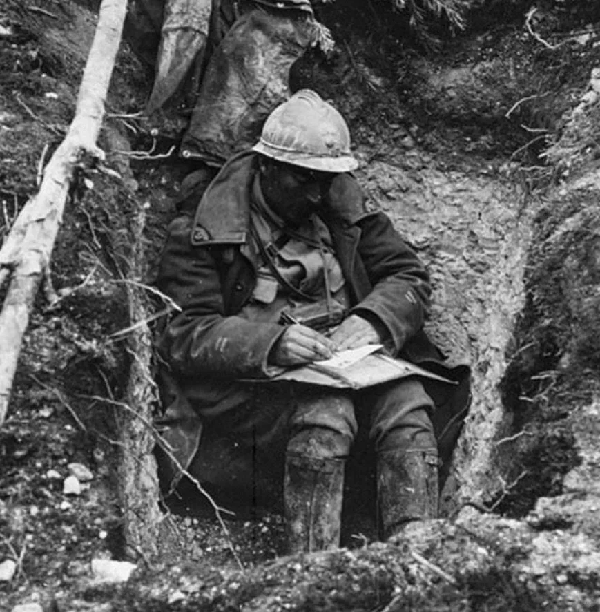 图7:一个士兵在凡尔登战役中的战壕里写信