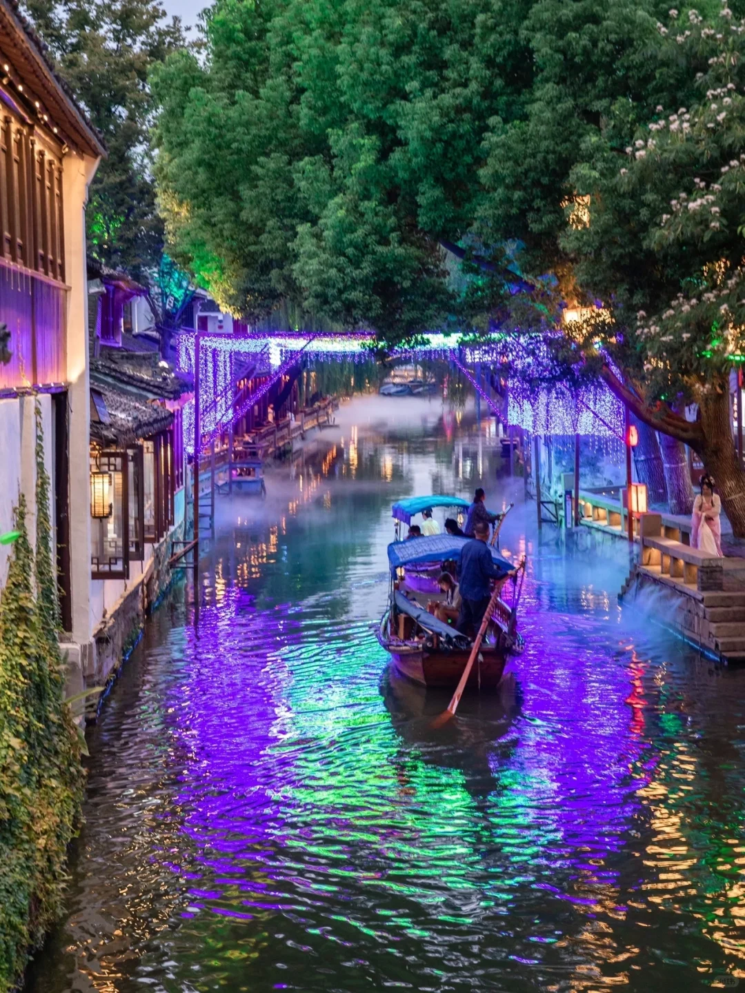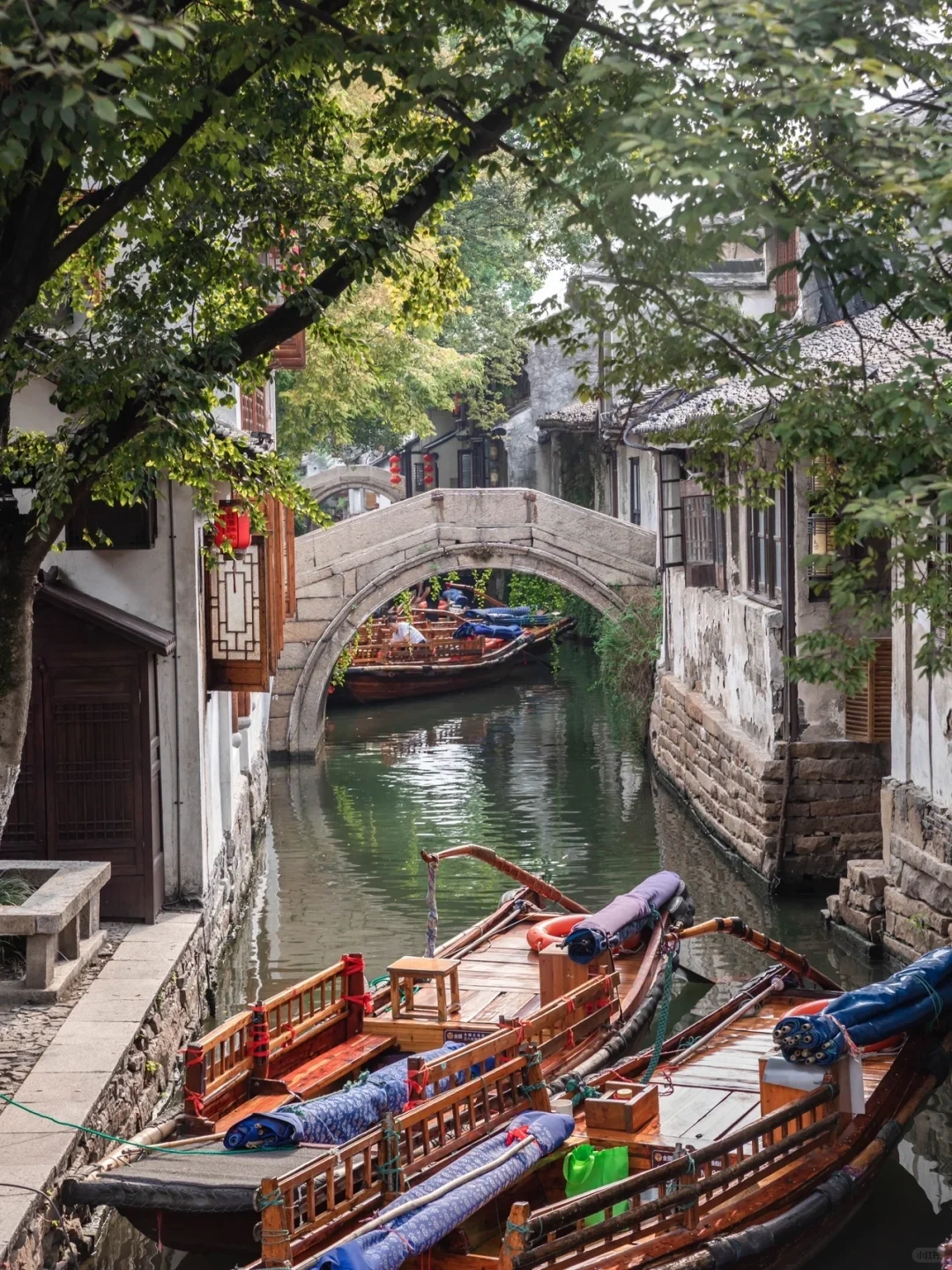 这里真不愧为中国第一水乡古镇! 古桥流水连接起古街巷道和明清古宅,漫步青石小巷,时间仿佛静止了下来。虽然它已经很有名气了,但庆幸这依然留存着一些人间烟火气~ · 📍苏州·周庄古镇 🎫 88 🚘 上海/苏州出发开车1h左右,杭州出发近2h · 🗺️ 第一次来周庄怎么玩❓ ☑️ 不要错过古镇的清晨,当大量游客还没涌入时才能真正感受这里静谧的美🛶 ☑️ 参观保存较好的明清古居:张厅,沈厅,沈三万水底墓等 ☑️ 去三毛去过的茶馆喝茶,老板和三毛是笔友🍵 ☑️ 在江南水乡坐一次摇橹船🛶 你会愿意在这里虚度时光~ ☑️ 傍晚亮灯后的古镇街道也很美🏮花巷、古牌楼、古戏台的灯光尤为漂亮 · 🍖 美食: 特色菜 猪蹄,炸鱼干,还有各色小吃:袜底酥,青团,撑腰糕…