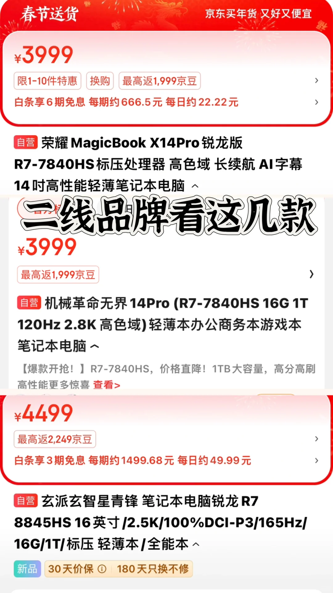 ❗️说说二选品牌,二线品牌明显溢价低很多,但是品控和售后就会差一点,二线牌子一定要在 jd 自营买,不要去第三方买要不然售后会很头疼
