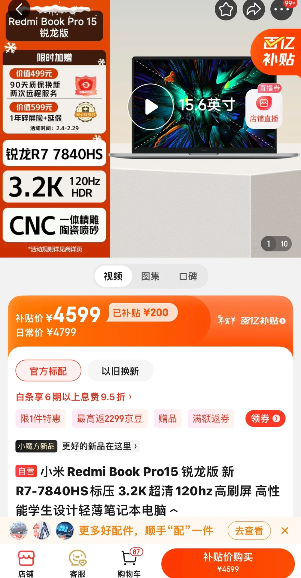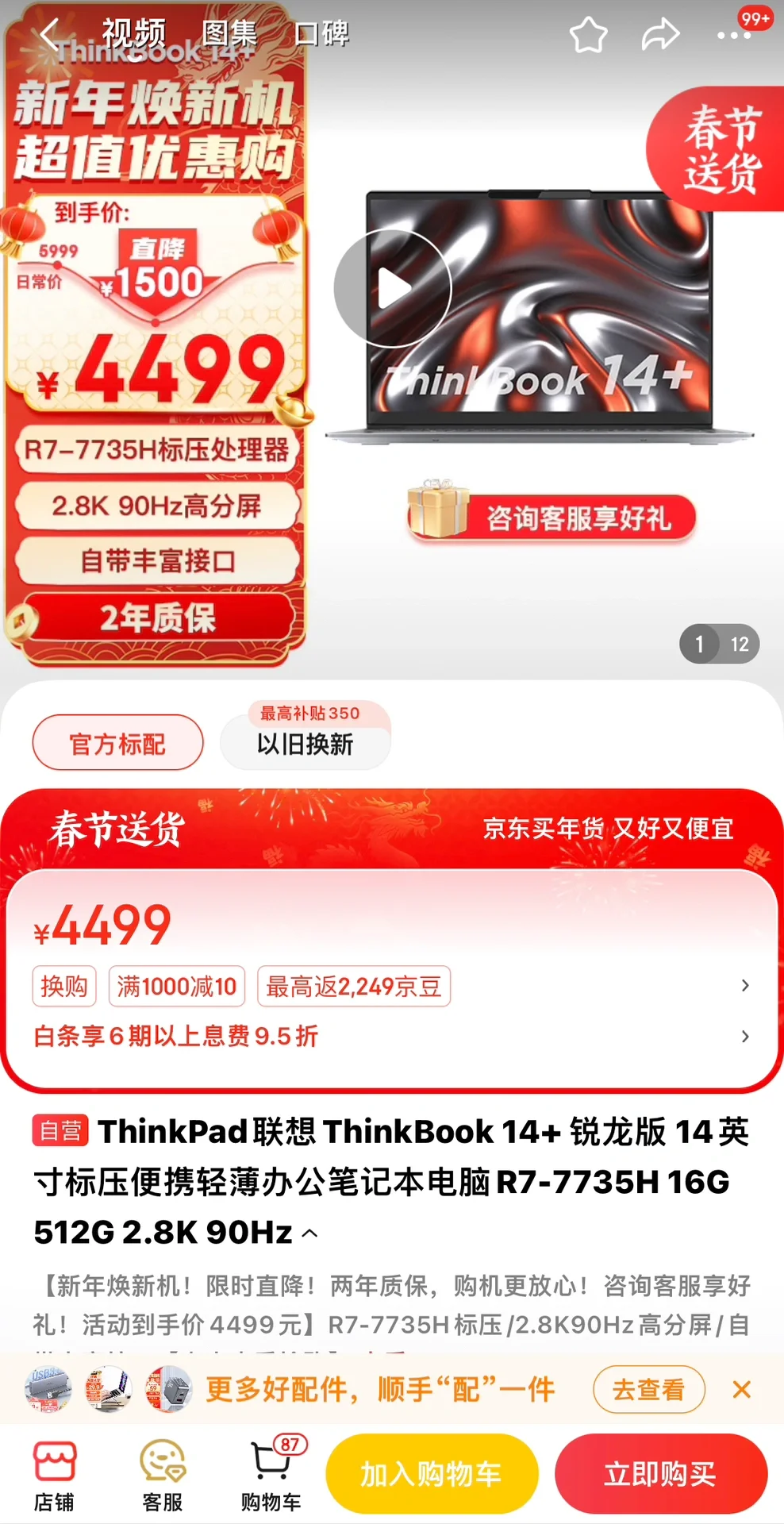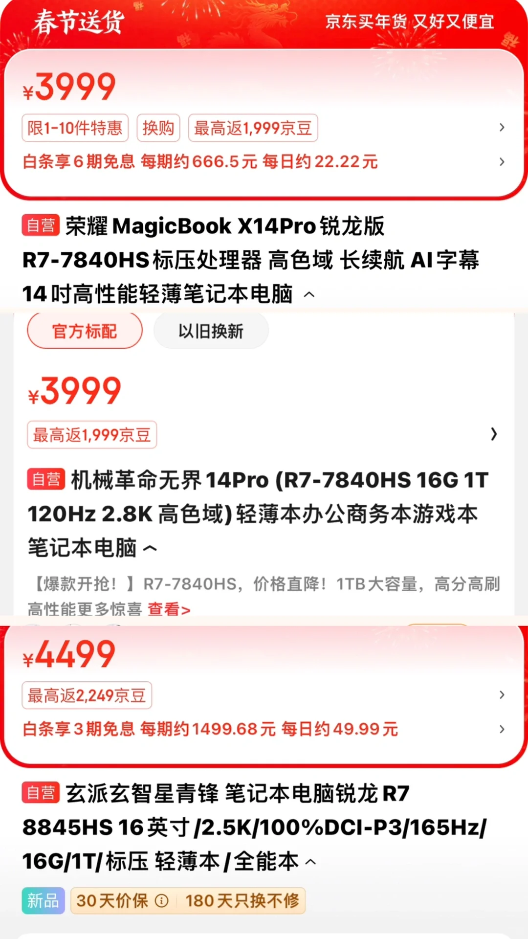 本来我想推荐7840H,但是之前双11那波百补没了,之前卖4500左右性价比可高,现在活动力度不大,只能买7735H 了,低于4300可闭眼入,现在价格还有点小贵