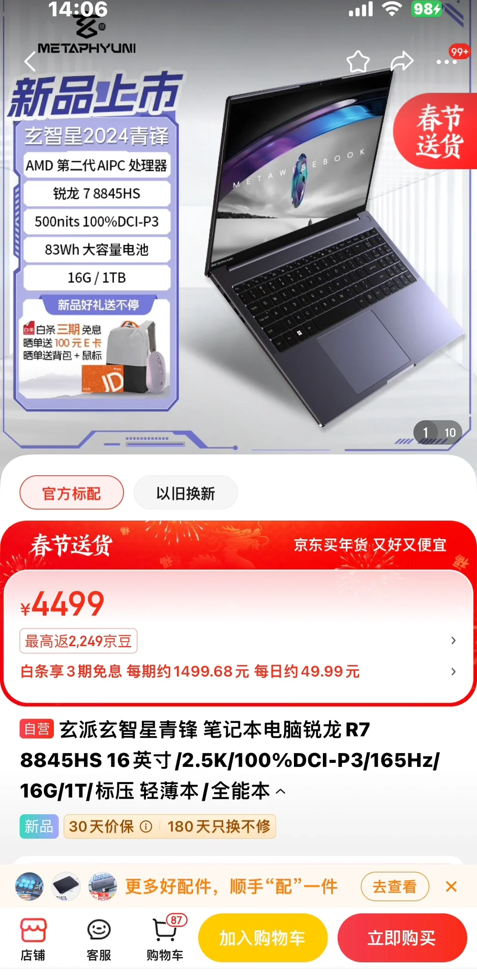 搭配AMD 全新8845H 处理器,性能没得说,性价比也有,提前咨询下当地是否可以进行上门维修