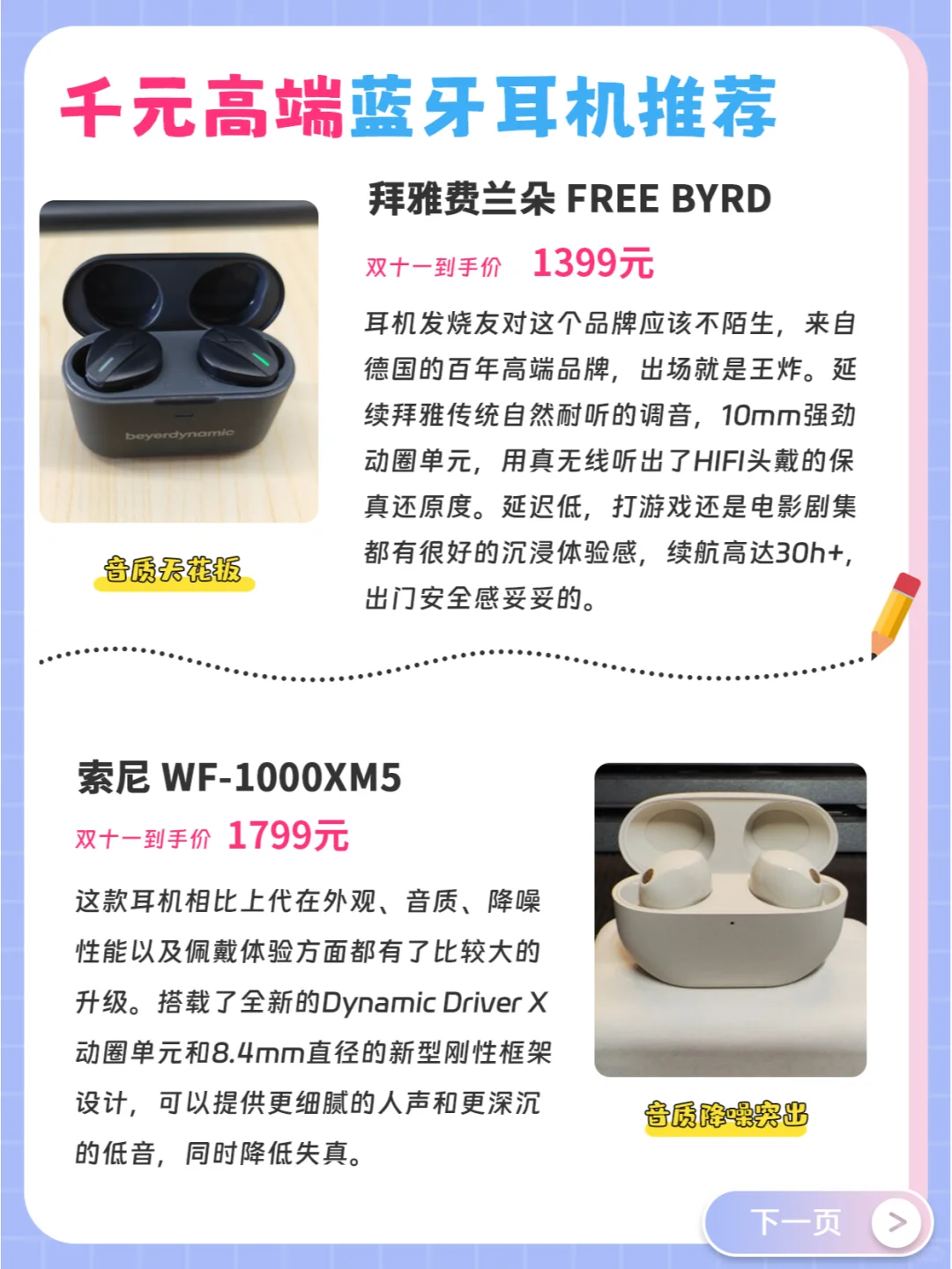 ⭕千元高端蓝牙耳机推荐(详细参考图4-图6)